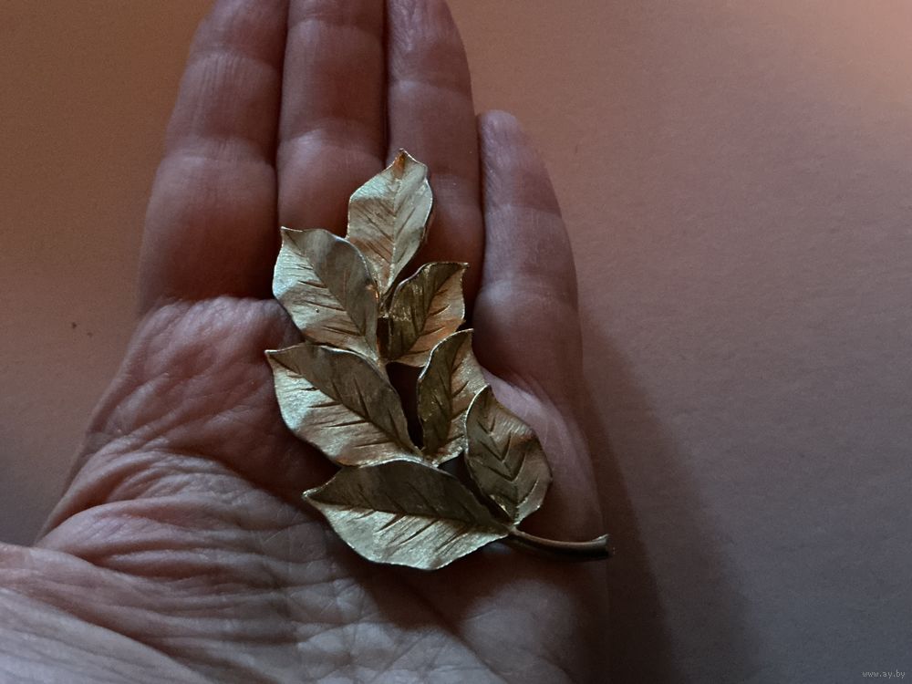 Большая красивая брошь клеймо , матовое золото , без пятен, 7 см х 3,5 см , литая