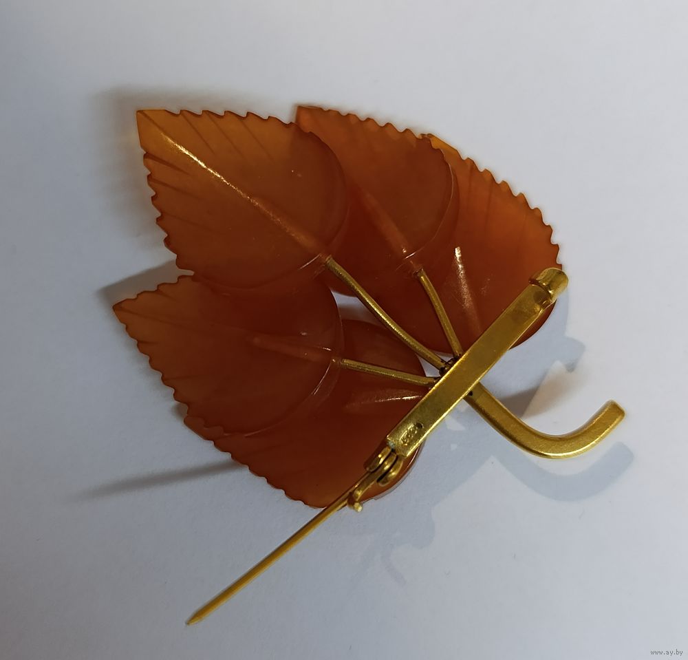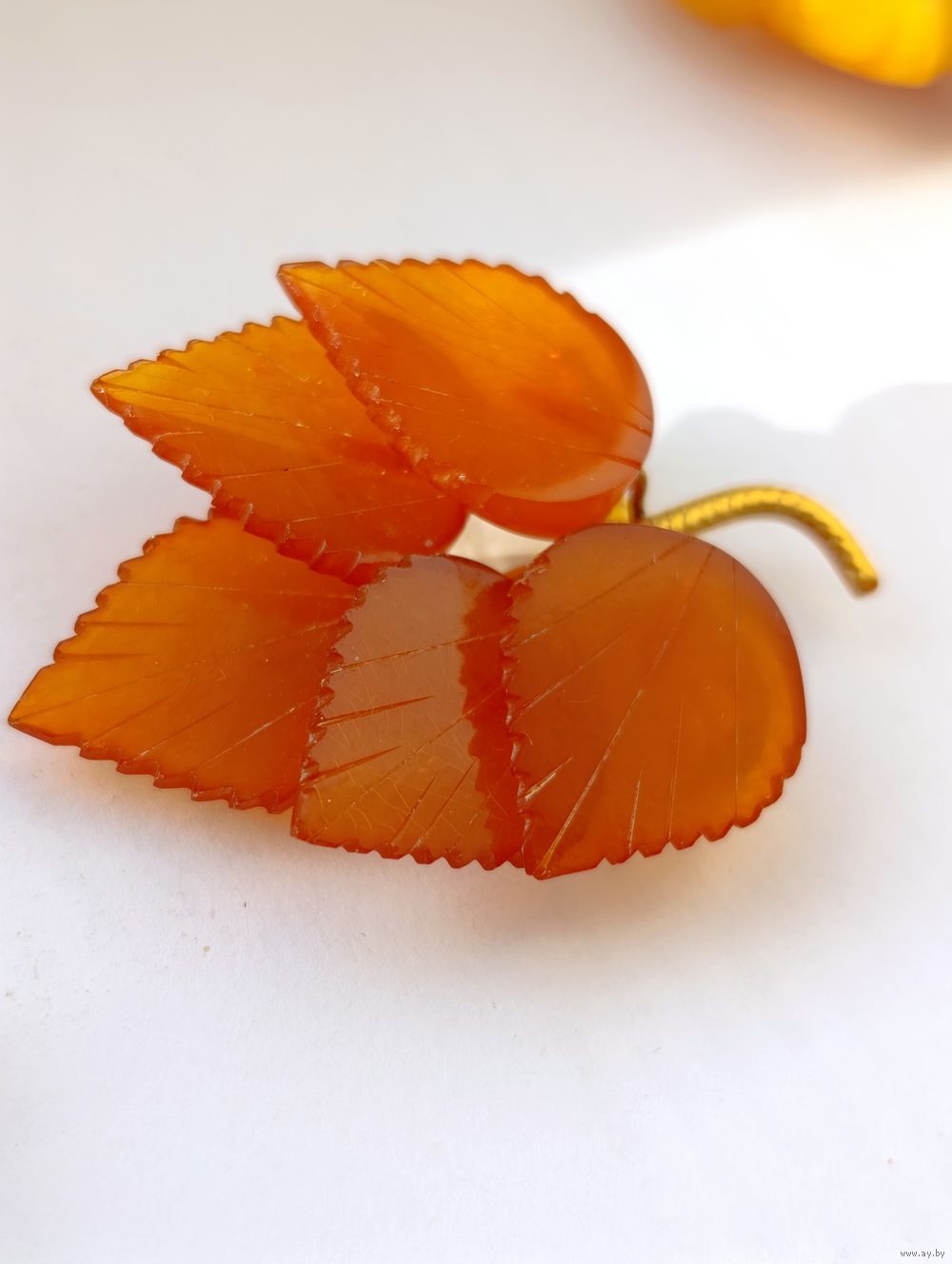 Брошь 5 листиков. Янтарь. клеймо 8РЯ