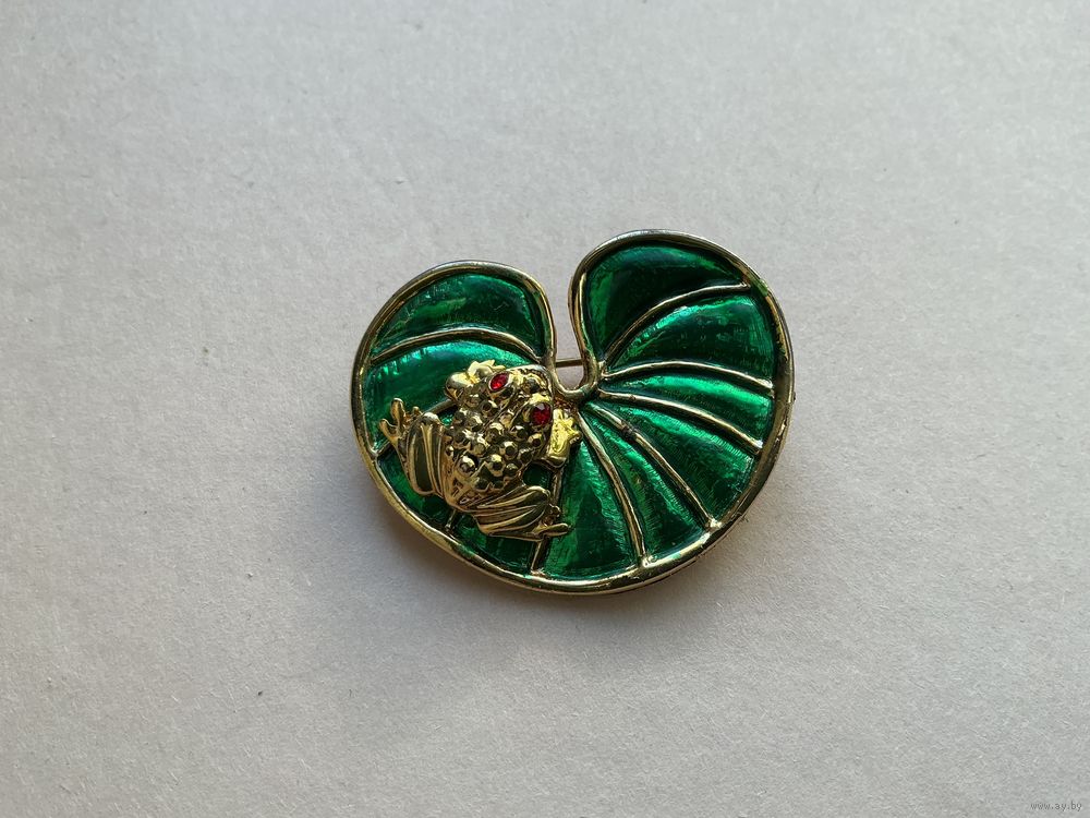 Красивая брошь эмаль , лягушка на кувшинке , подобную видела у Сваровски, 3,7 см х 3 см