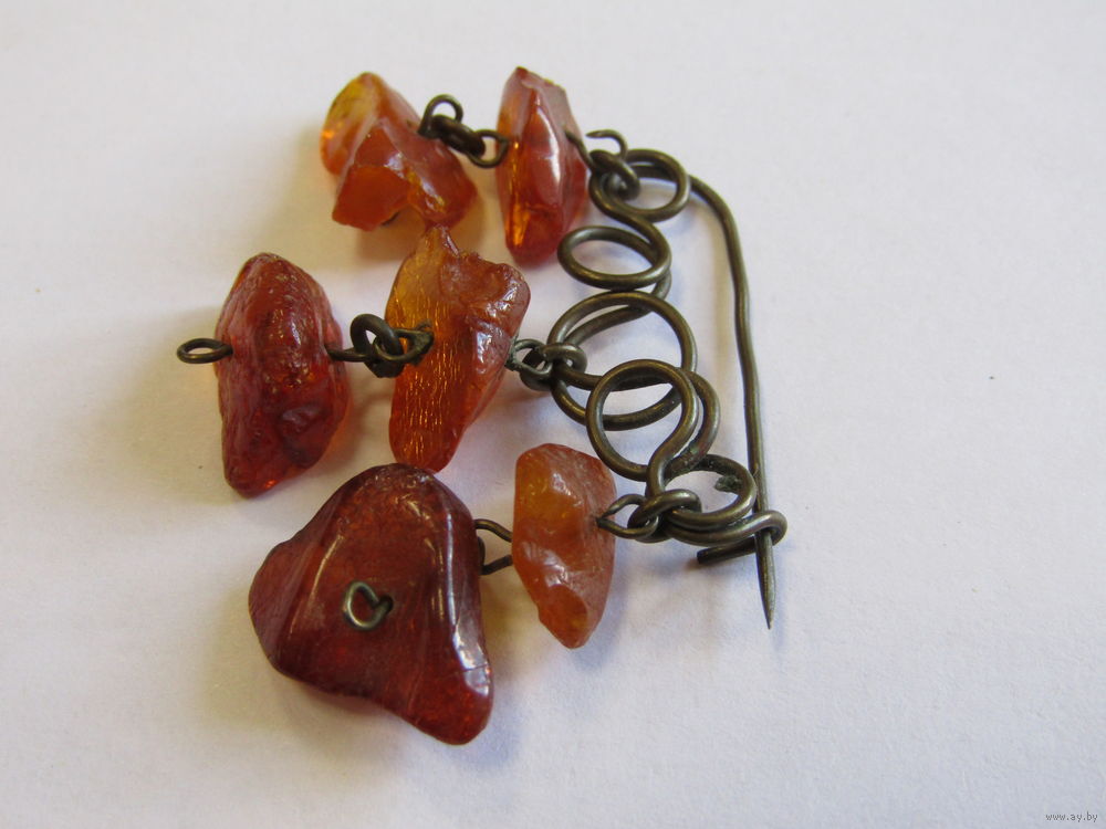 Брошь. Натуральный янтарь. Работа ювелирной мастерской. Ретро времен СССР.