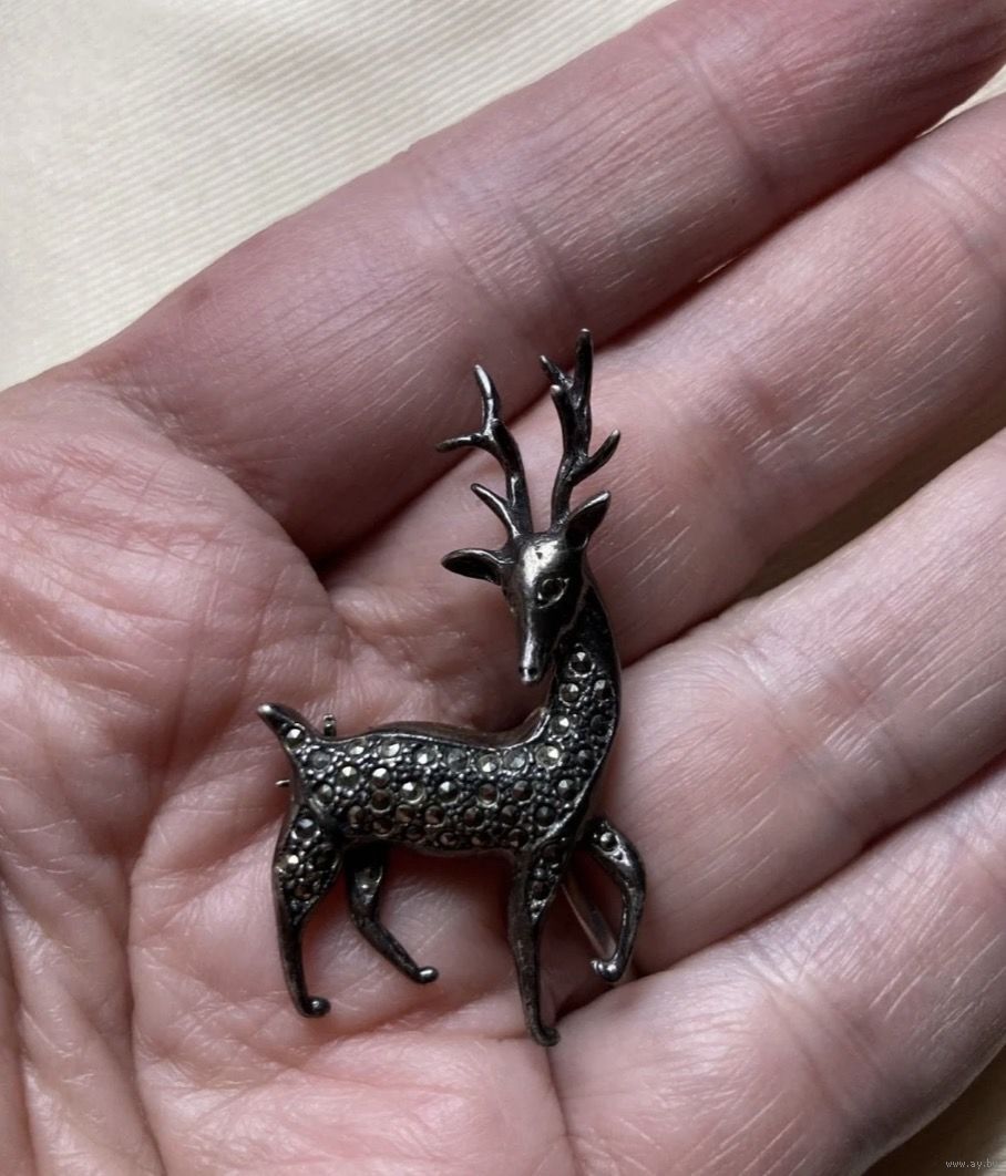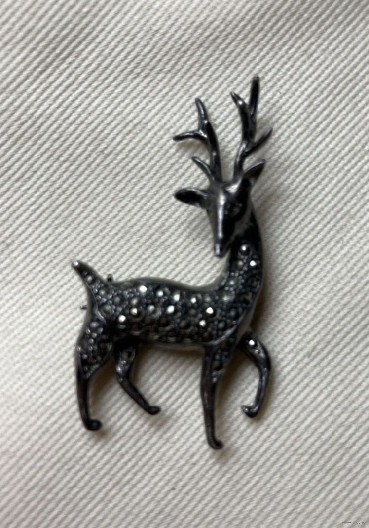 Редкость! Брошь Олень 4,5 см х 2,5 см, тонкая работа, Серебро, клейма нет, проверила реактивом