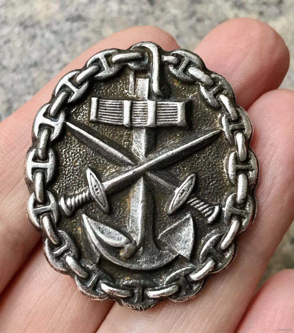 Реплика ордена за ранение для моряков 1918г. Германия. Сделан из металла цвета серебра. Размер 4х3,5см. Состояние хорошее.