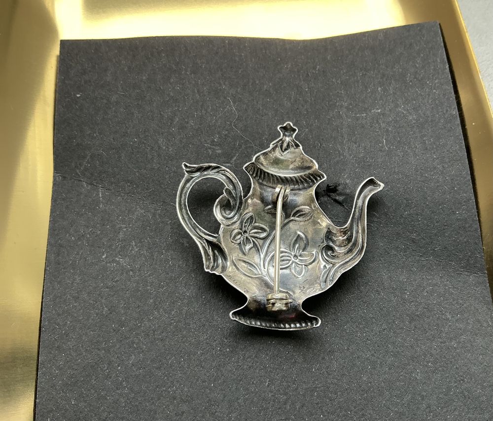 Красивая оригинальная брошь Чайник , клеймо sterling , 4,5 см х 4 см