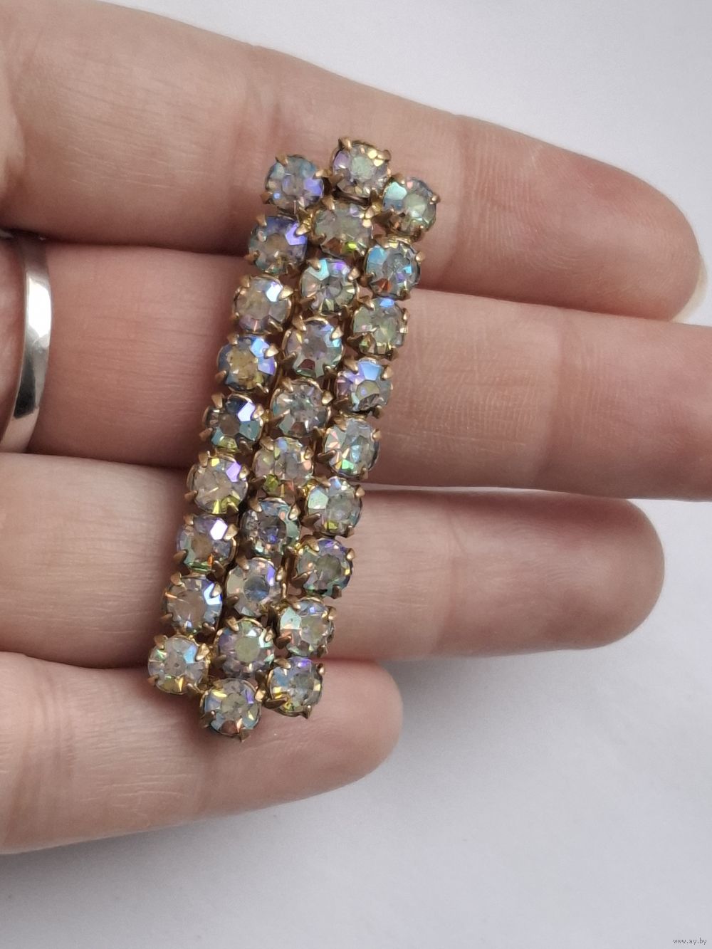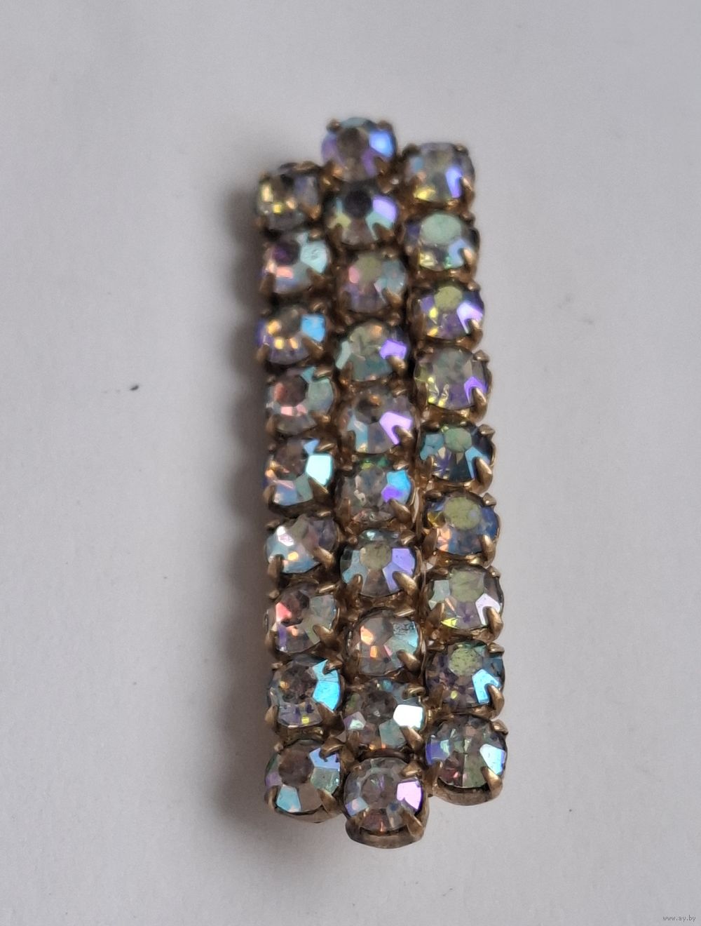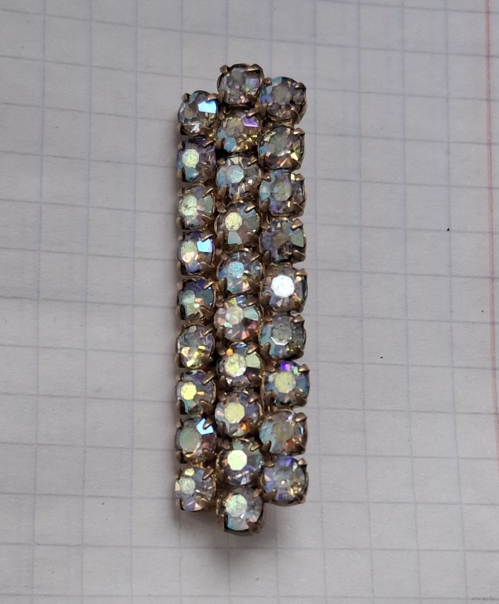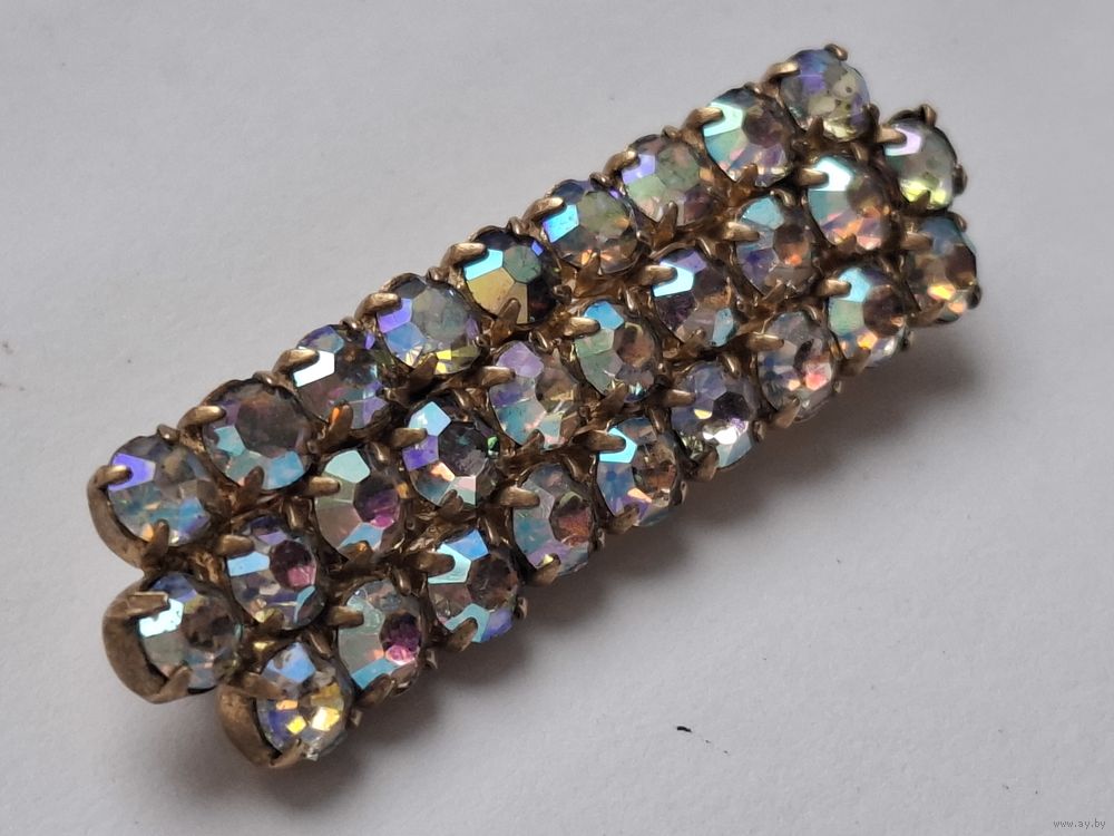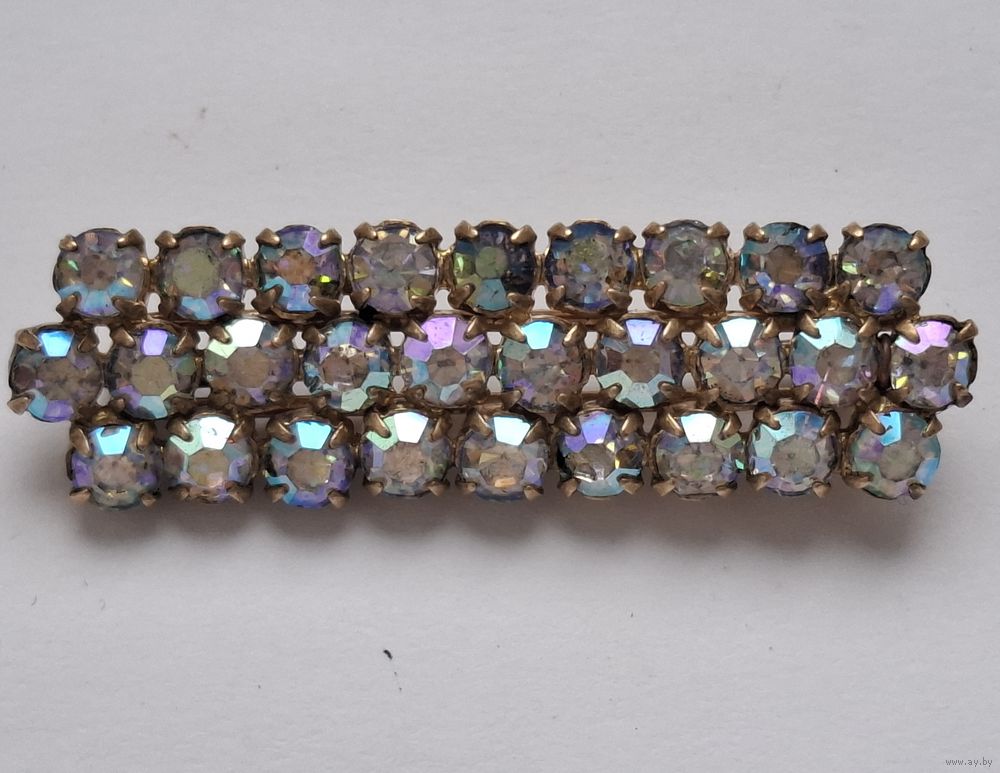 Винтажная брошь. Три ряда кристаллов с радужным напылением АВ («Северное сияние»).