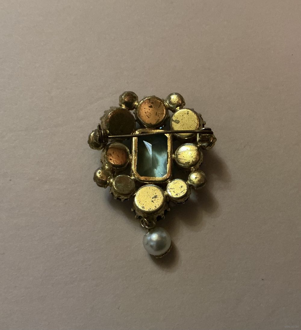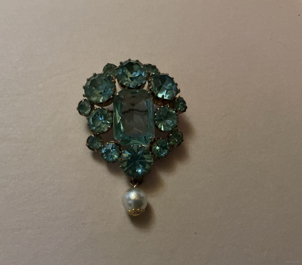Красивая брошь , стразы цвета морской воды, яркие , 5 см х 4 см , красота!