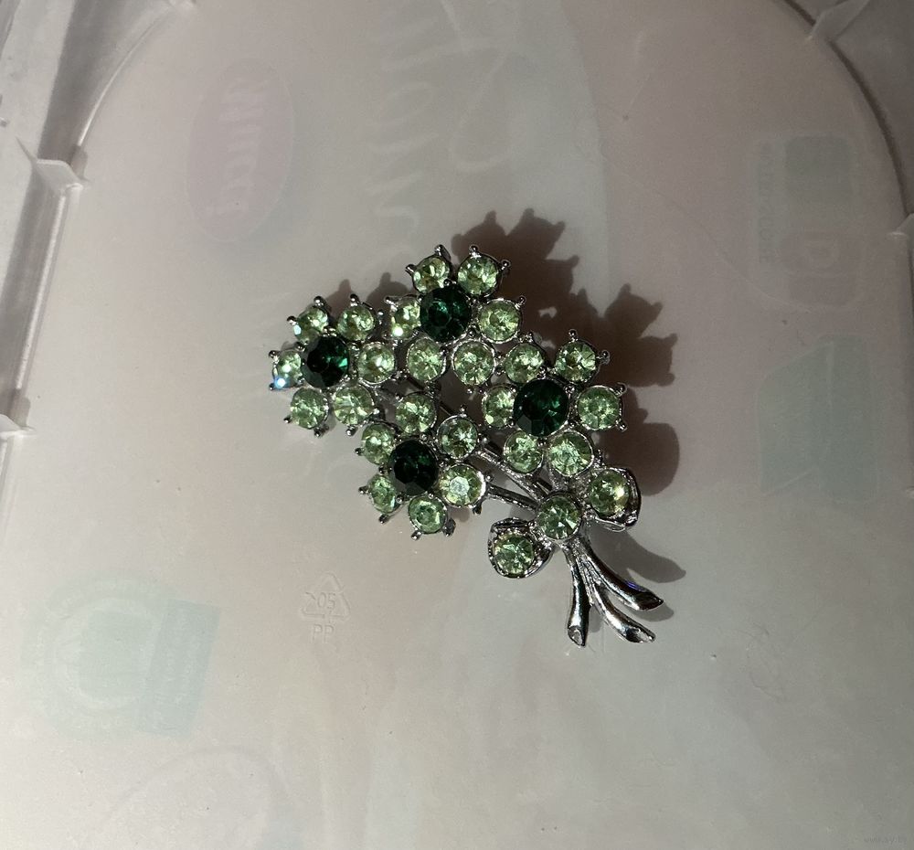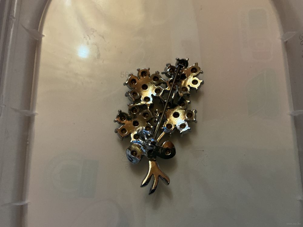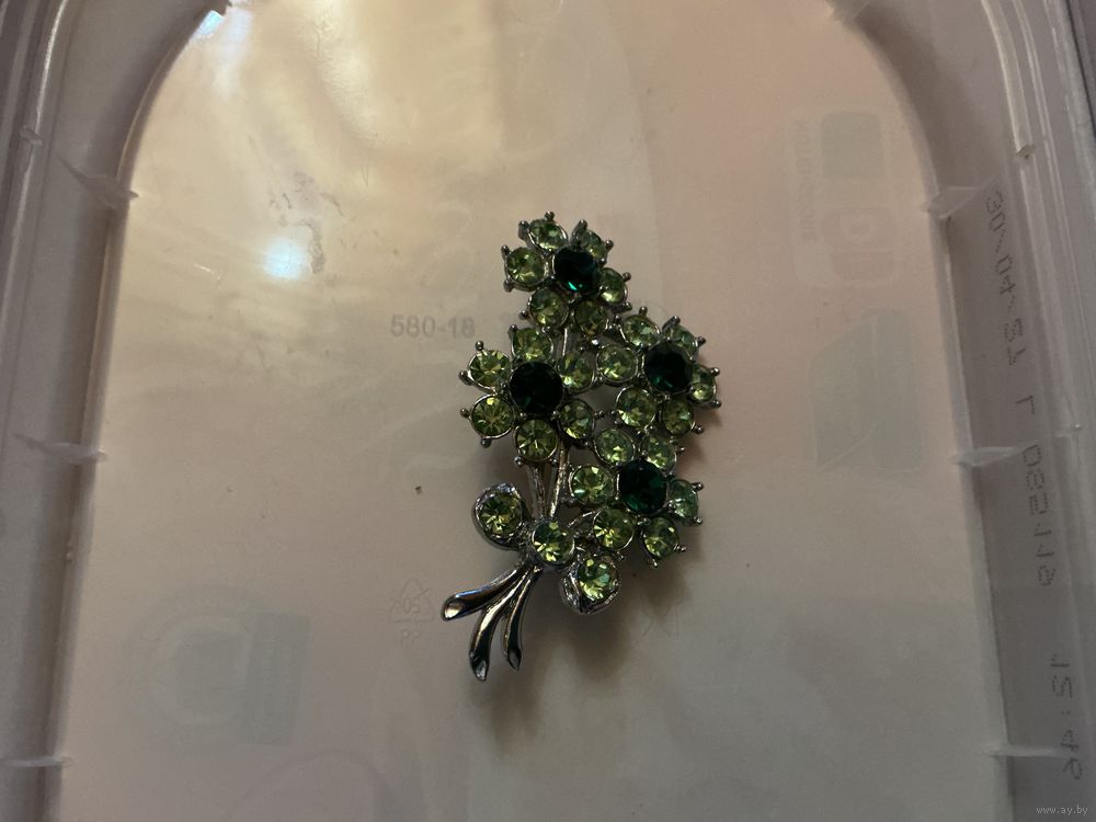 Крупная красивая брошь вставки урановое стекло , металл под серебро 5,5 см х 3,3 см , редкость