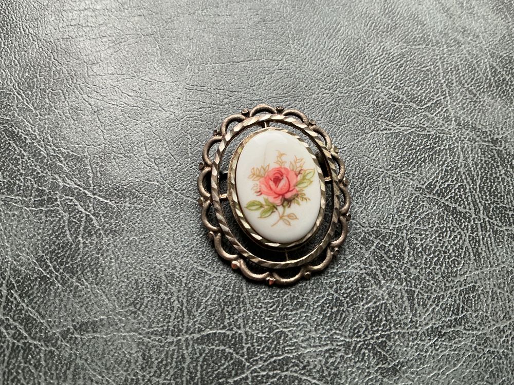 Красивая винтажная брошь деколь на фарфоре Роза , оправа серебро, алмазная грань, клейма нет, проверено реактивом, 3 см х 2,5 см, смотрите все мои лоты