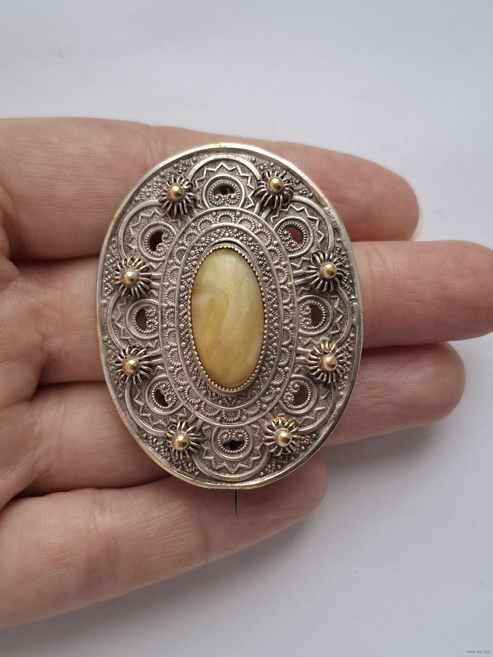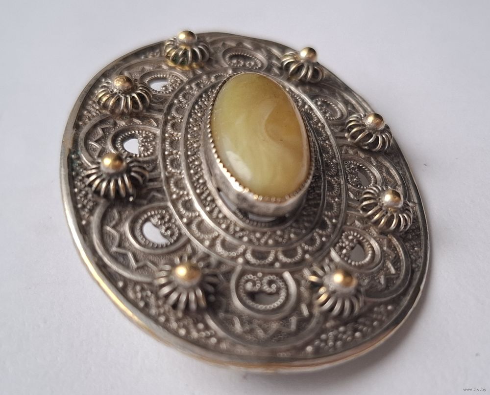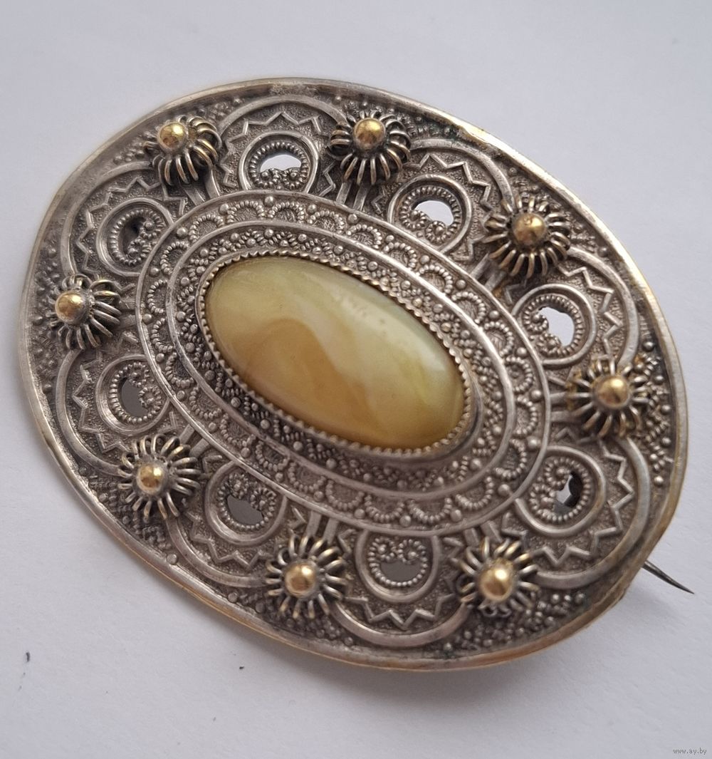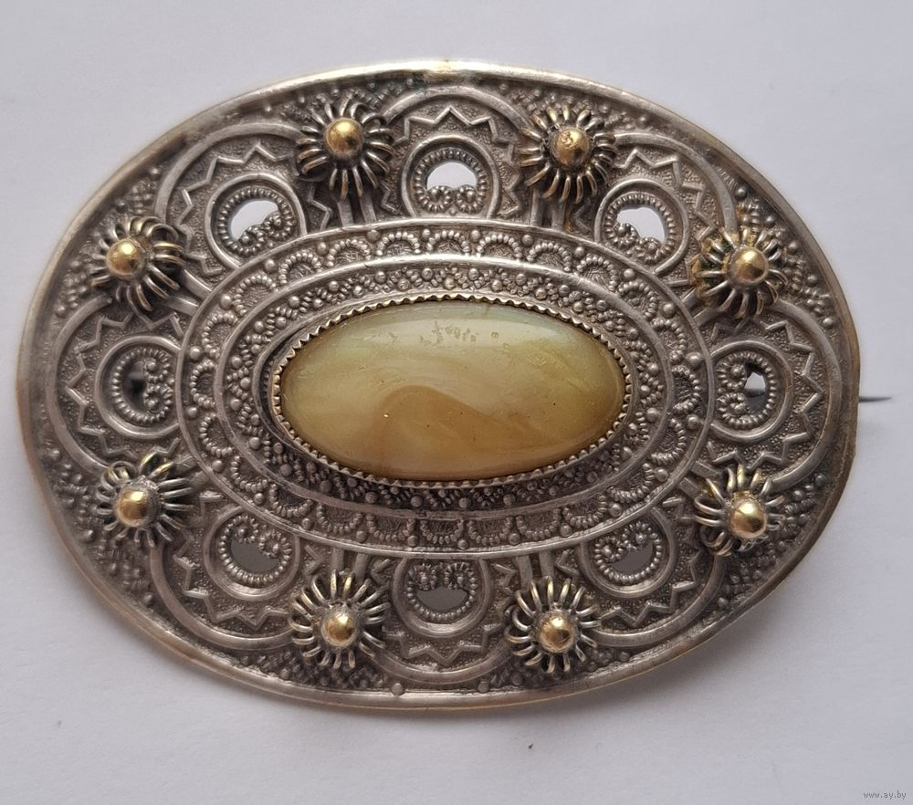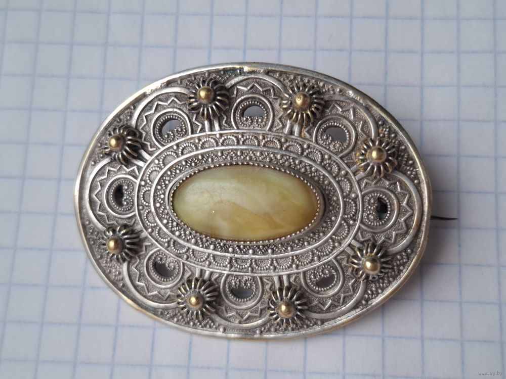 Брошь с камнем, 40- 50-е годы. Латунь, посеребрение