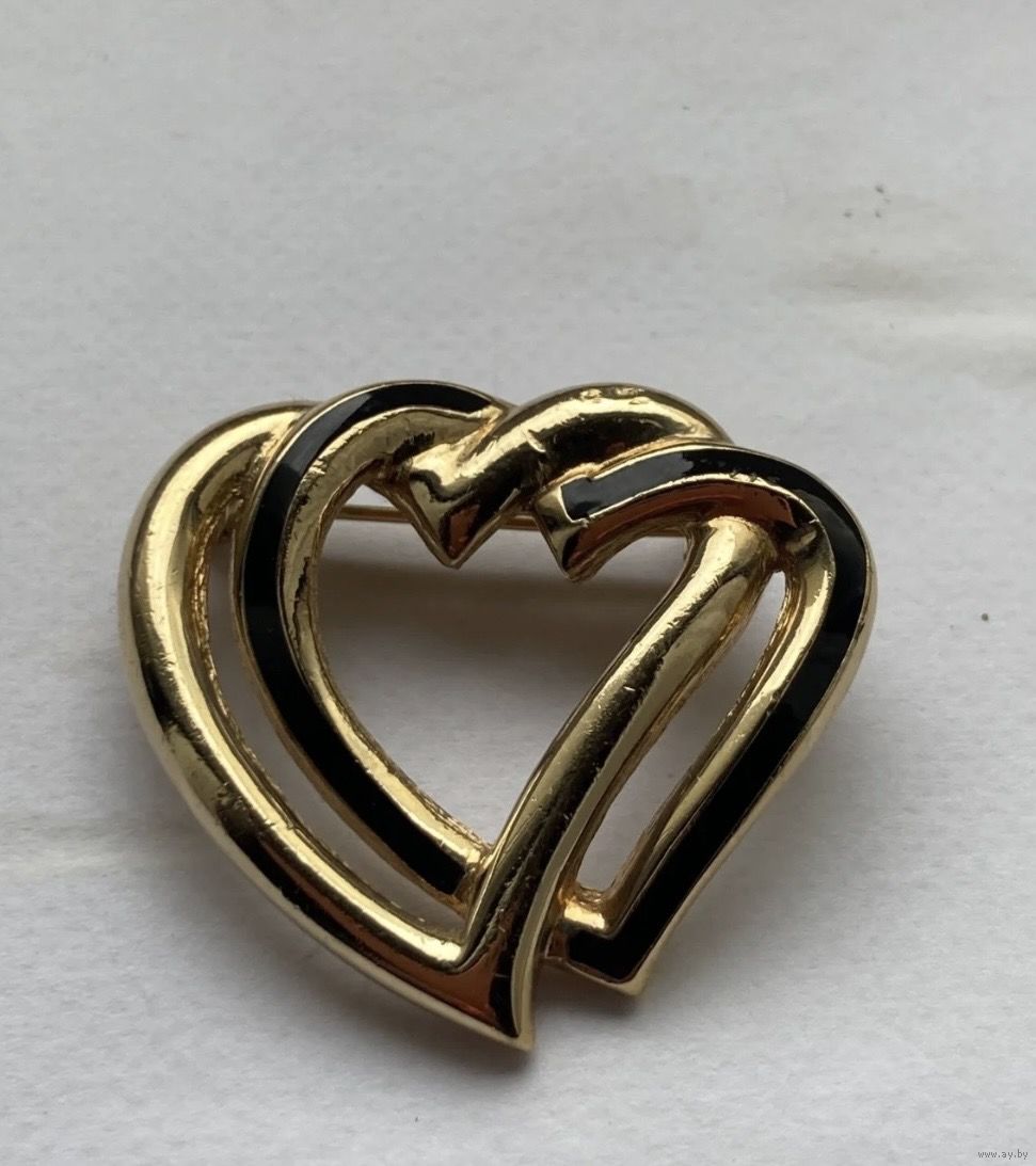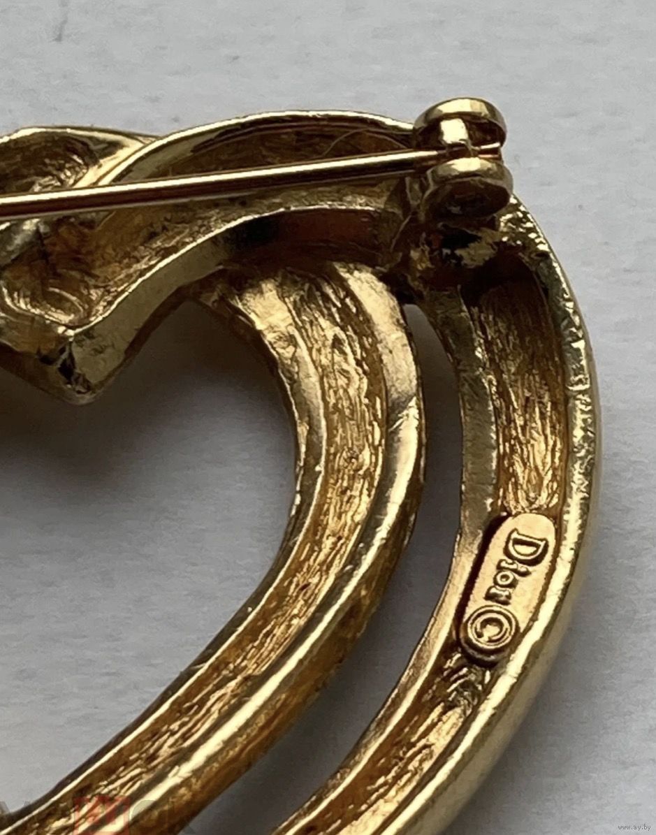 Редкость , брошь сердца, клеймо Dior , золотой металл , эмаль , оригинал, 3,3 см х 3,5 см