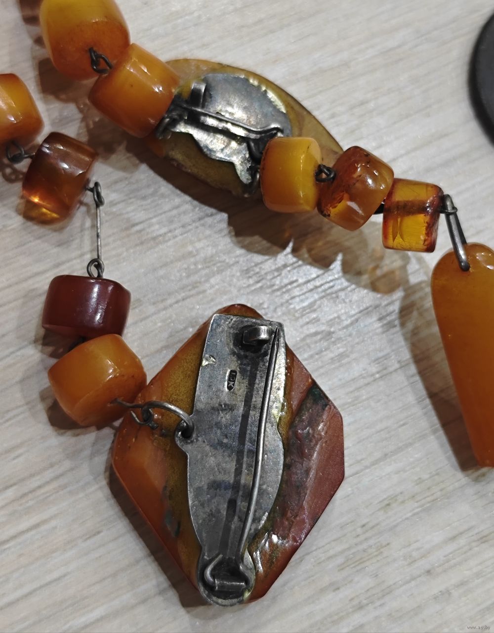 Брошь, серебро с янтарем. Специфическая, моделируемая. СССР. Калининград. 14см
