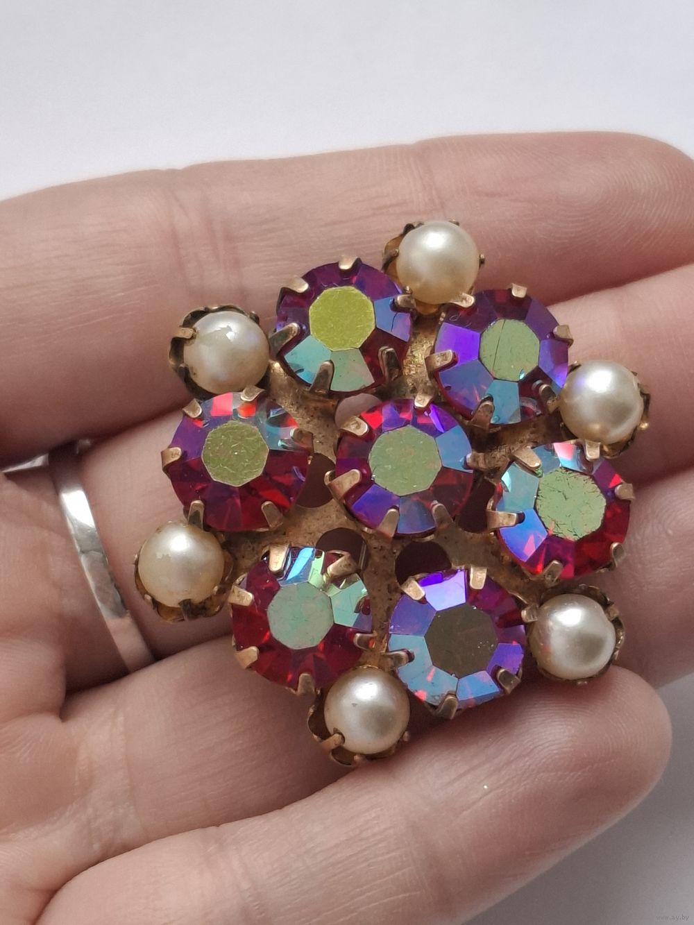 Брошь с сияющими кристаллами.