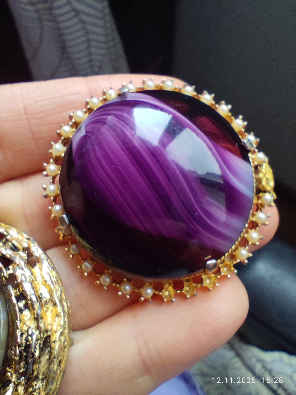 центральная вставка целая, есть потери по оправе и старая пайка возле замка (закрашена). замок держит, носибельна, тяжелая.