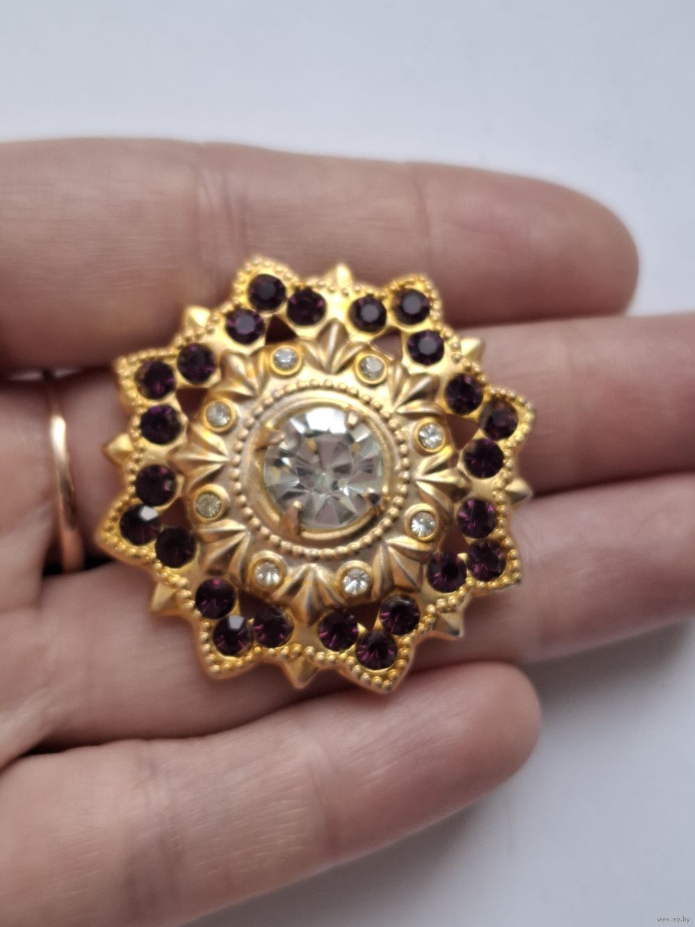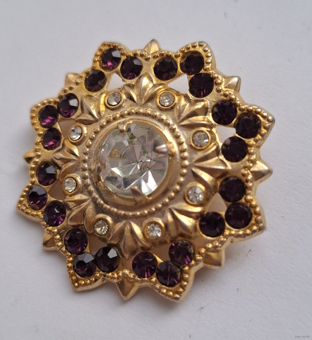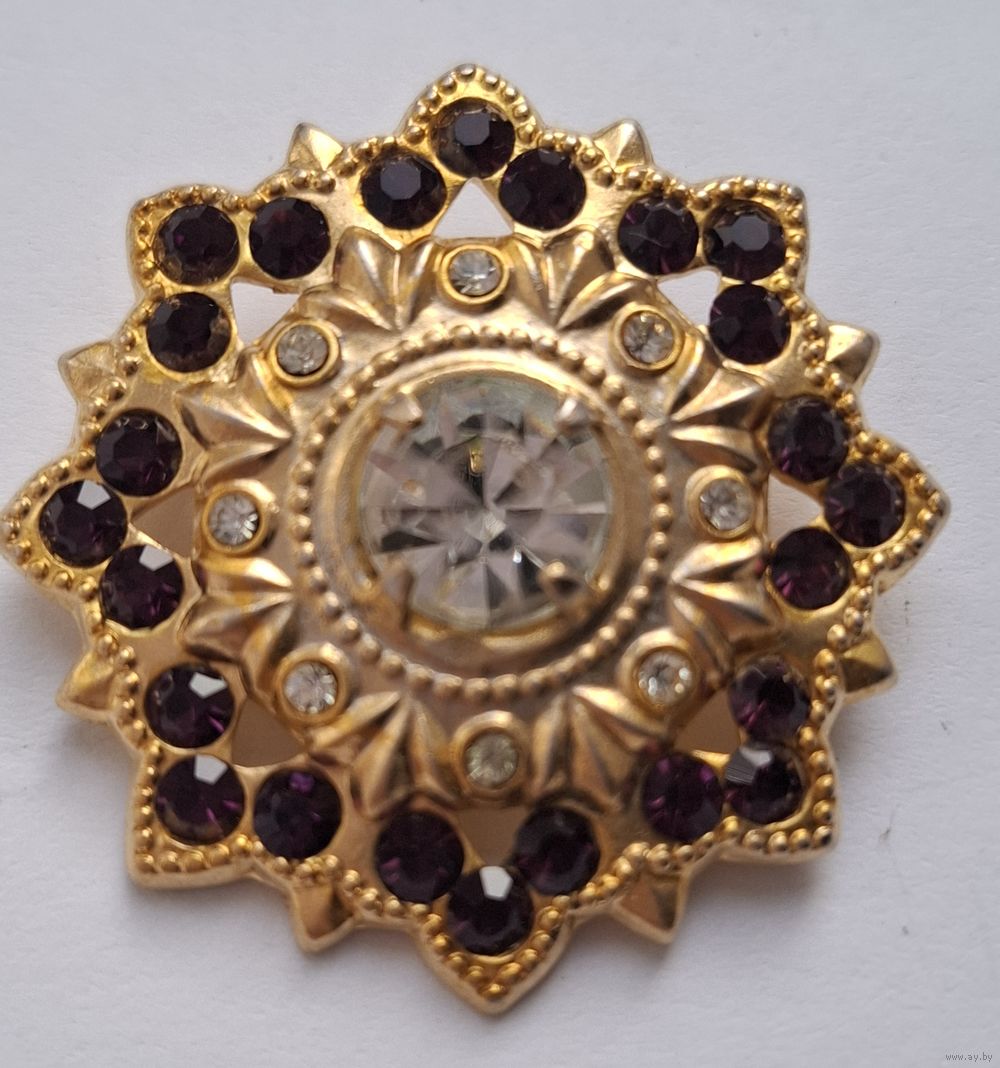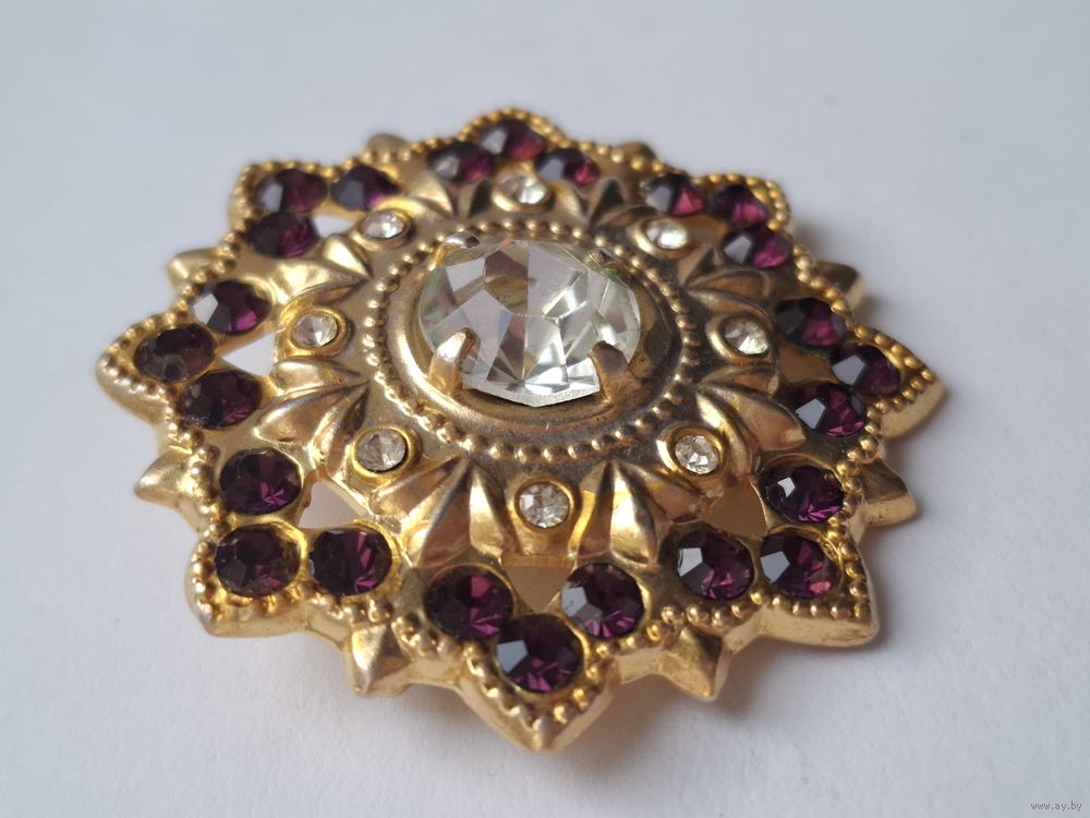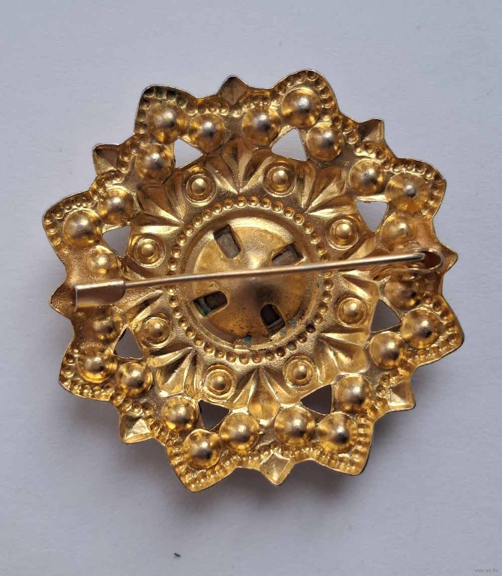 Брошь СССР. Гранатовые кристаллы. Позолота