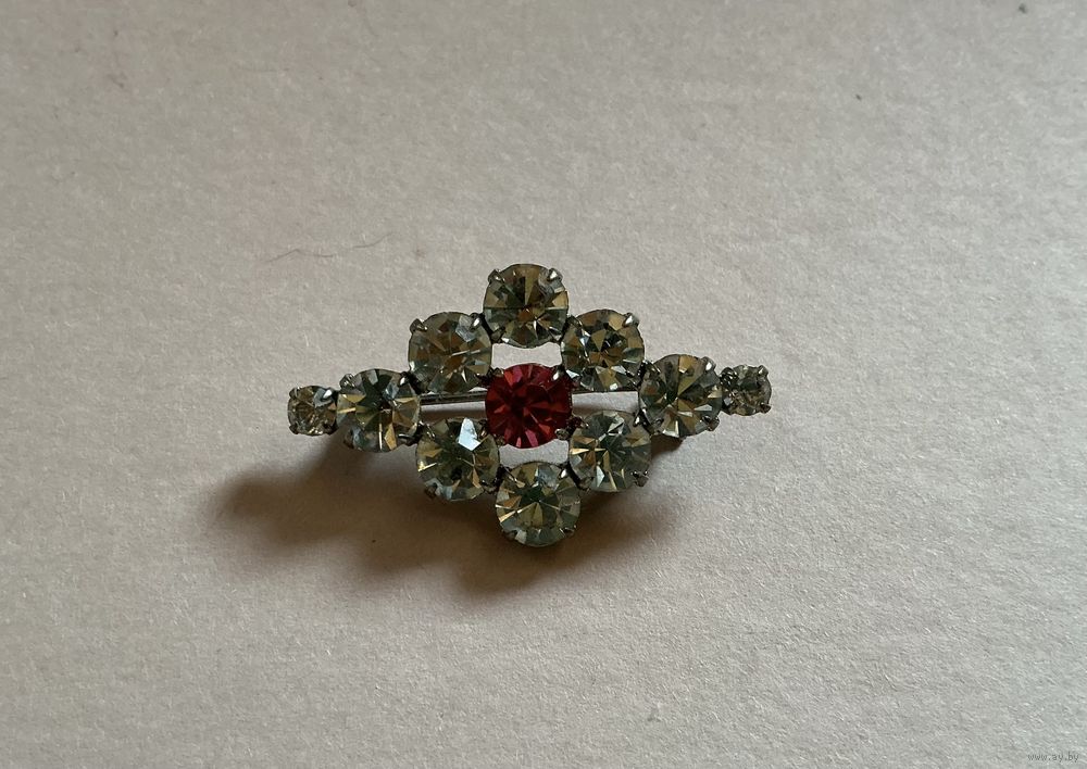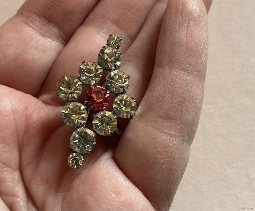 Брошь под серебро, белые и розовые стразы 3,7 см х 2,5 см , замок работает