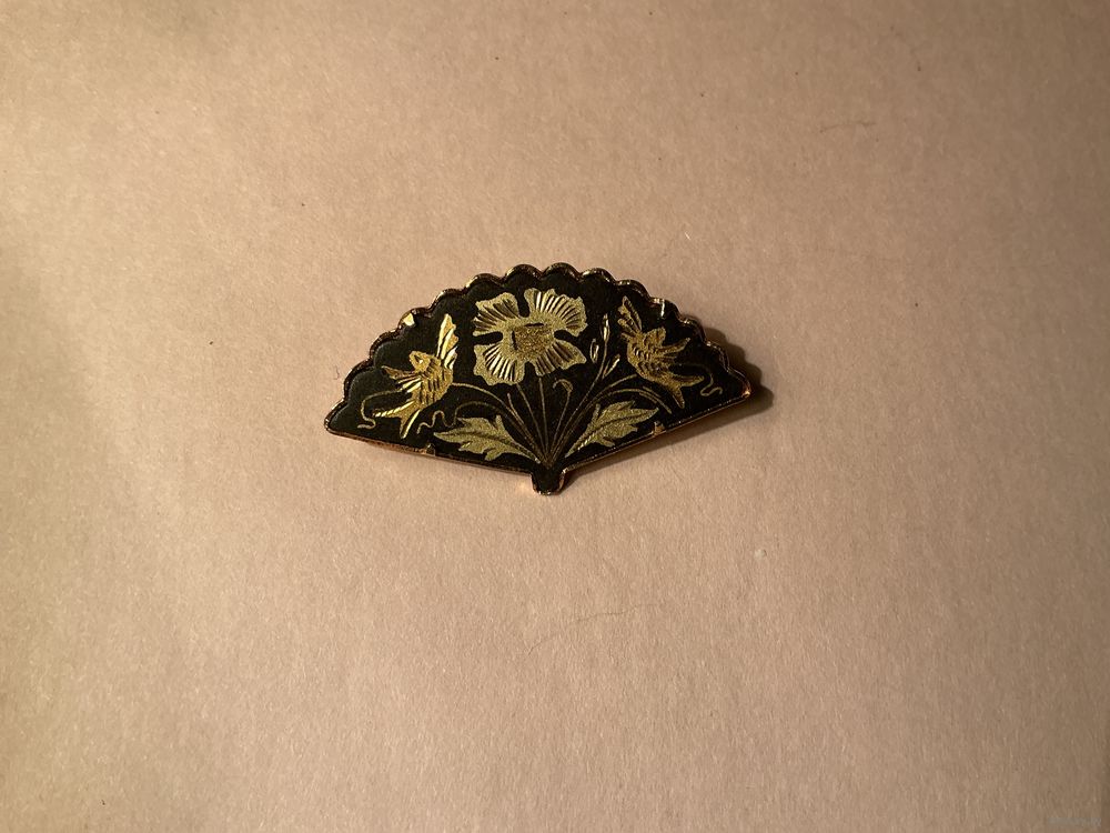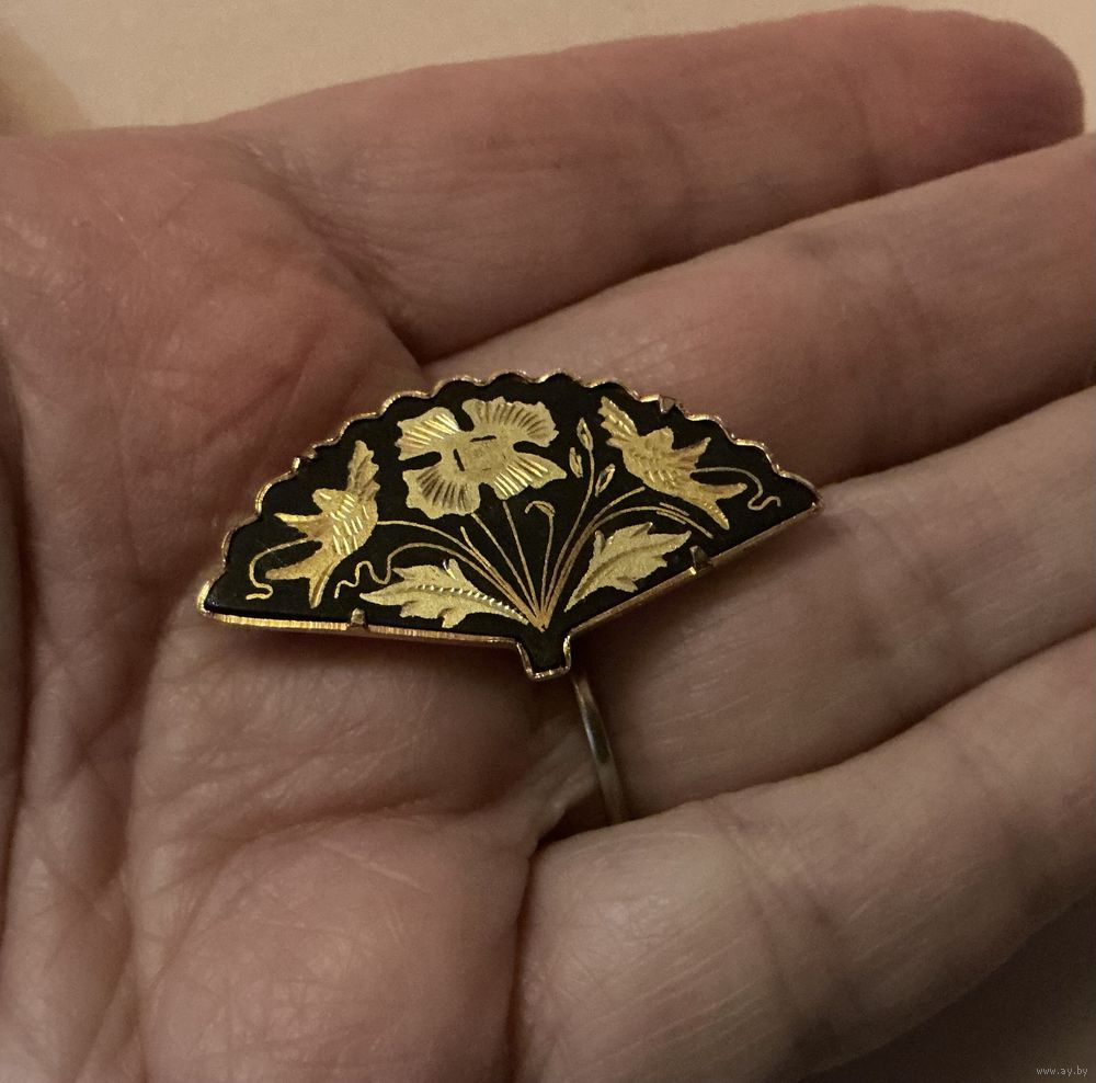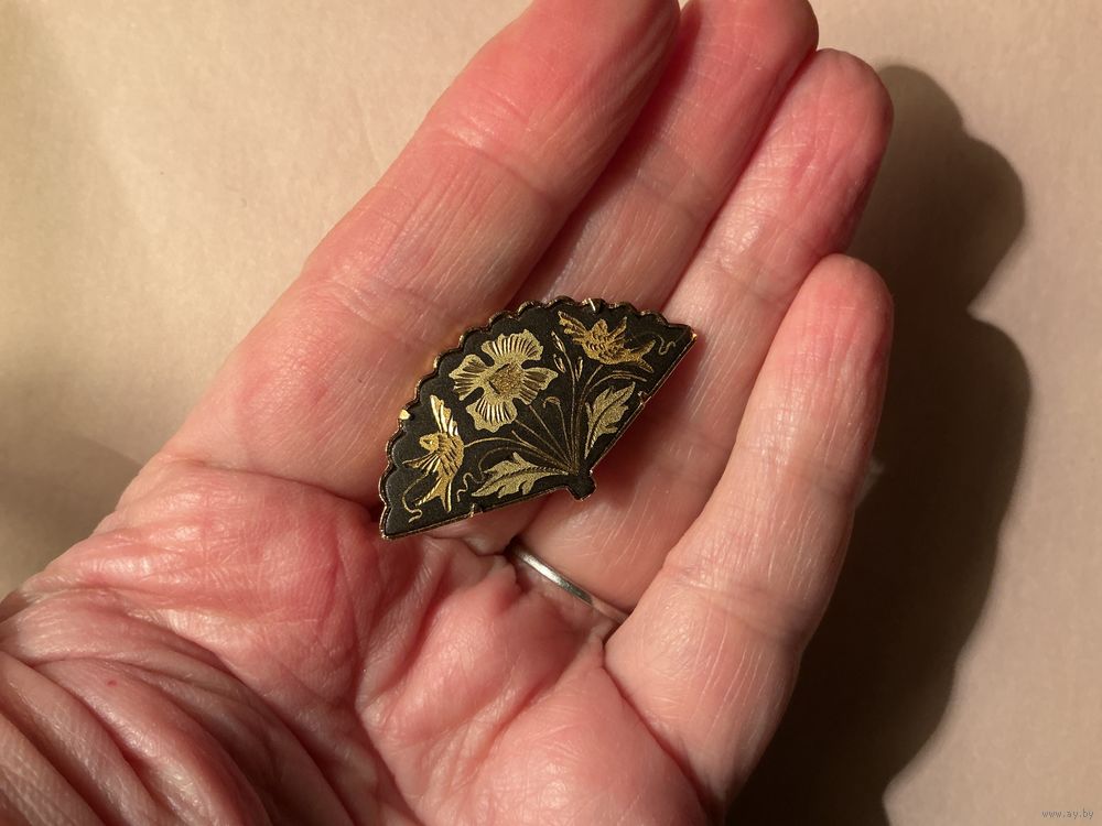Красивая старинная брошь, техника Дамаскин Испания, 4 см х 2 см