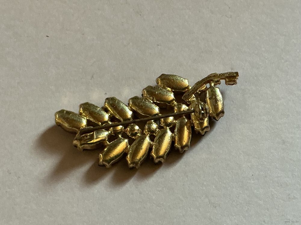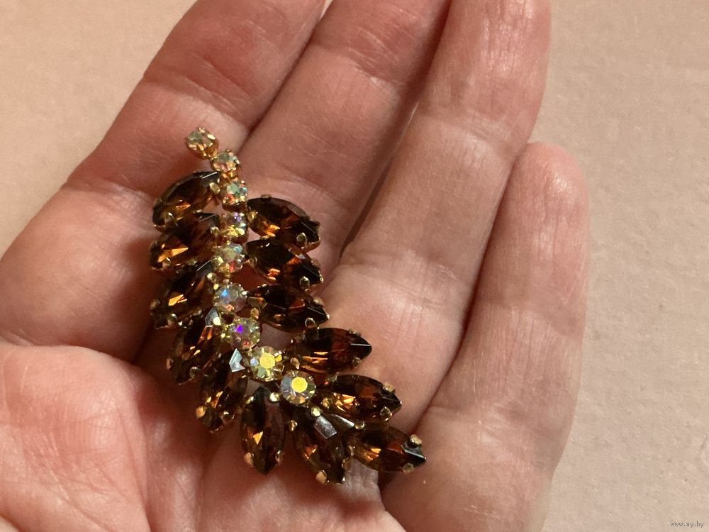 Брошь Веточка , стразы Аврора Бореалис и Коньячные , 5,5 см х 2 см , все в порядке