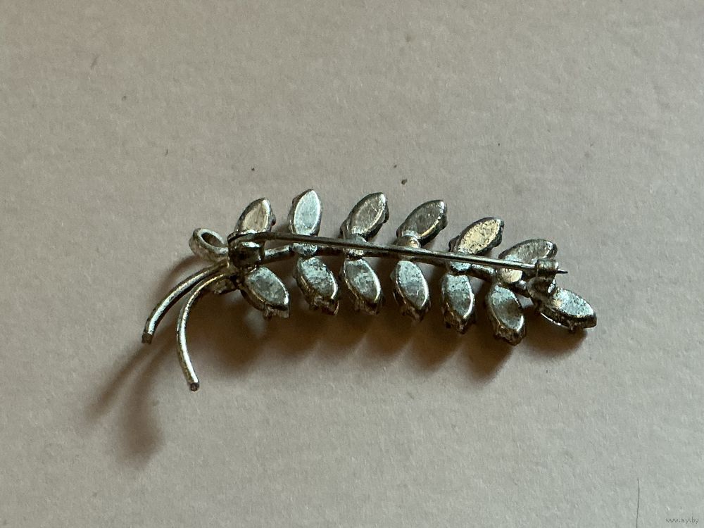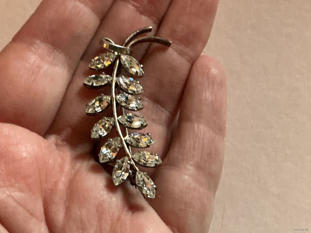 Красивая нежная брошь , вся сверкает как горный хрусталь , белый металл, застёжка С- образная, старого типа , длина 5 см