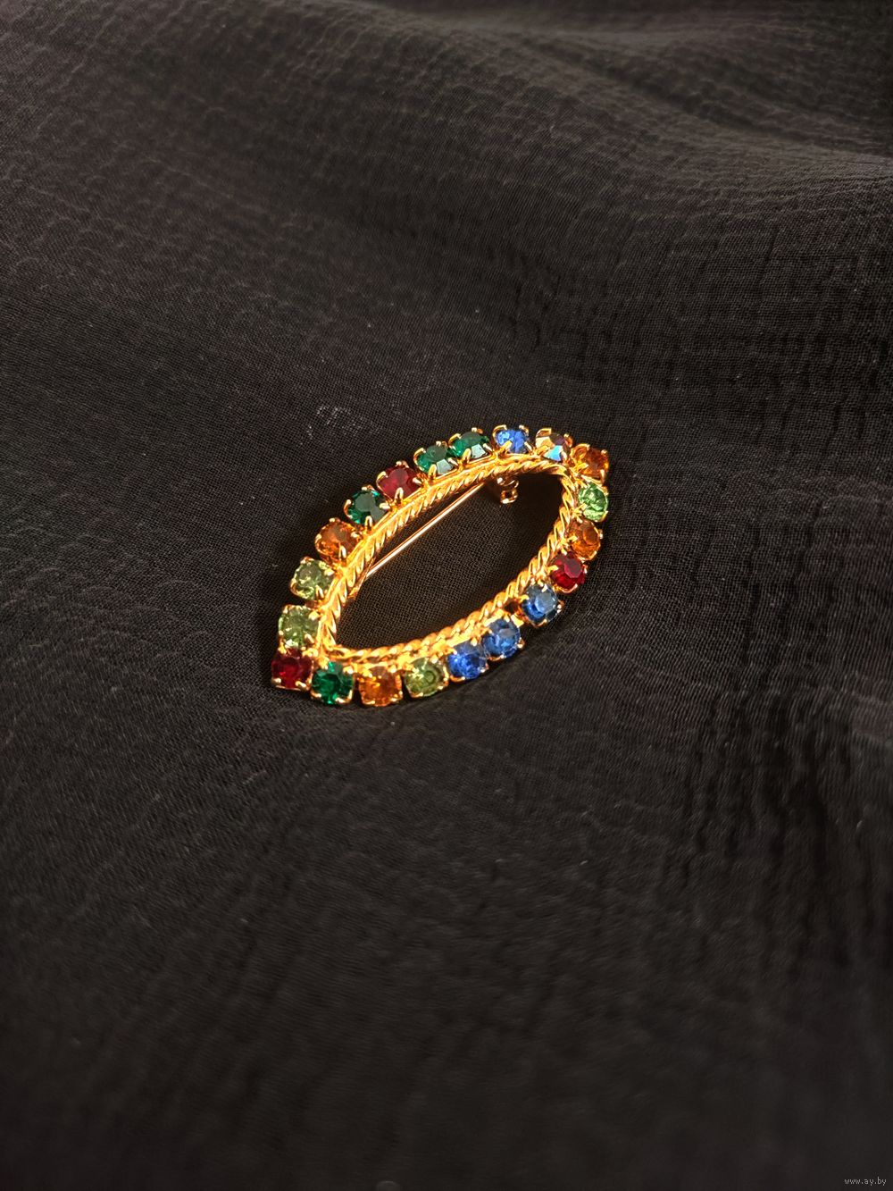 Красивая винтажная брошь с разноцветными стразами