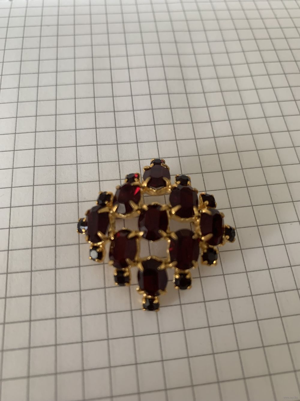 Очень красивая брошь. Чехословакия. Гранатовое стекло. Позолота. Вышлю дополнительные фото. Звоните, когда хотите….