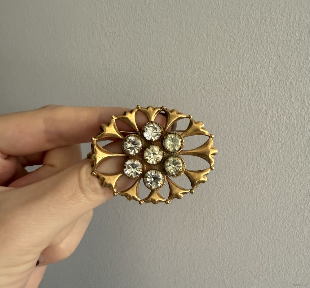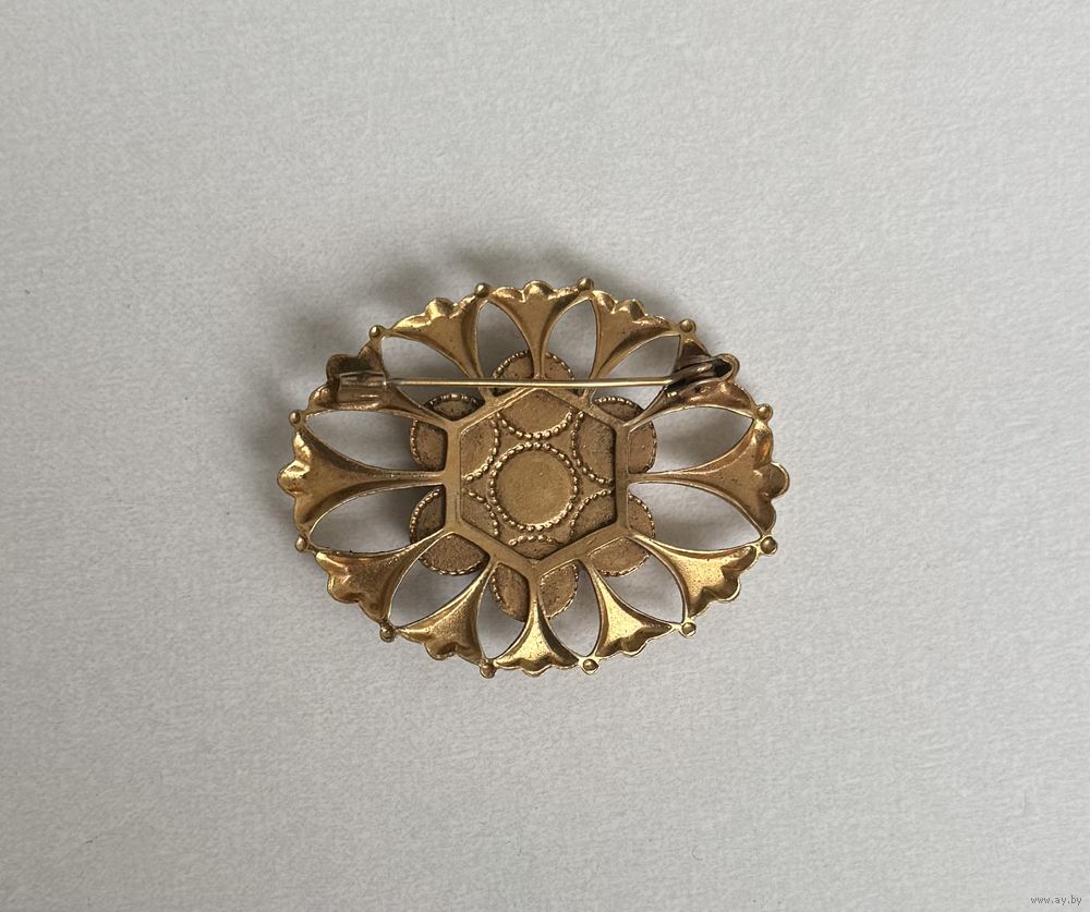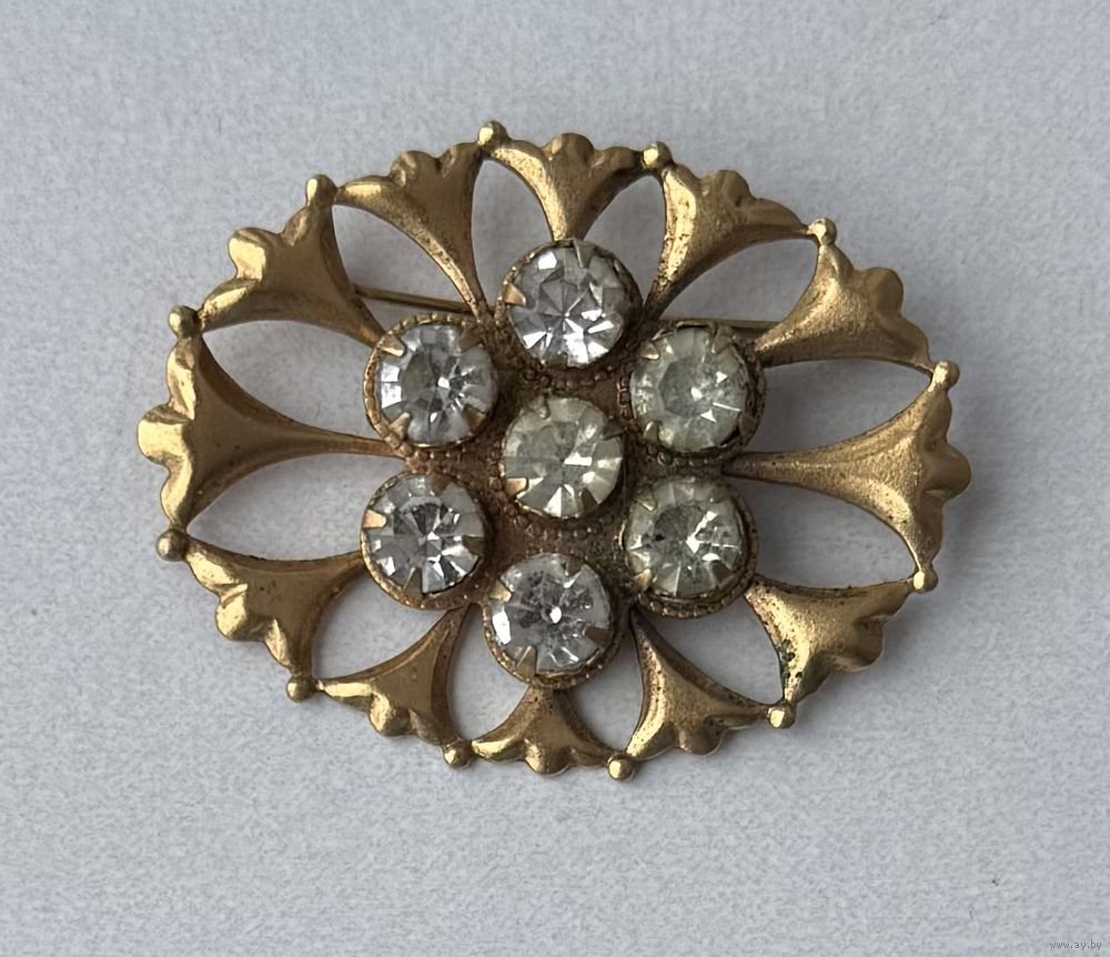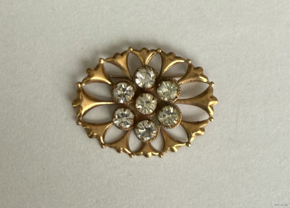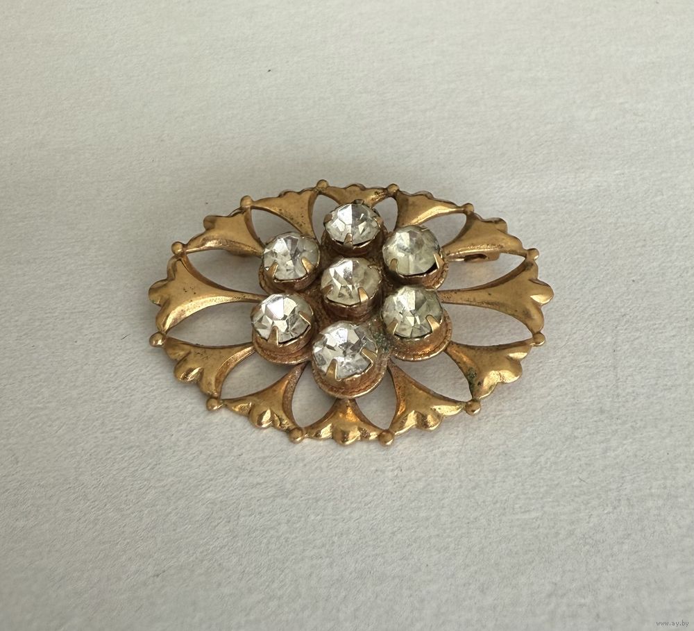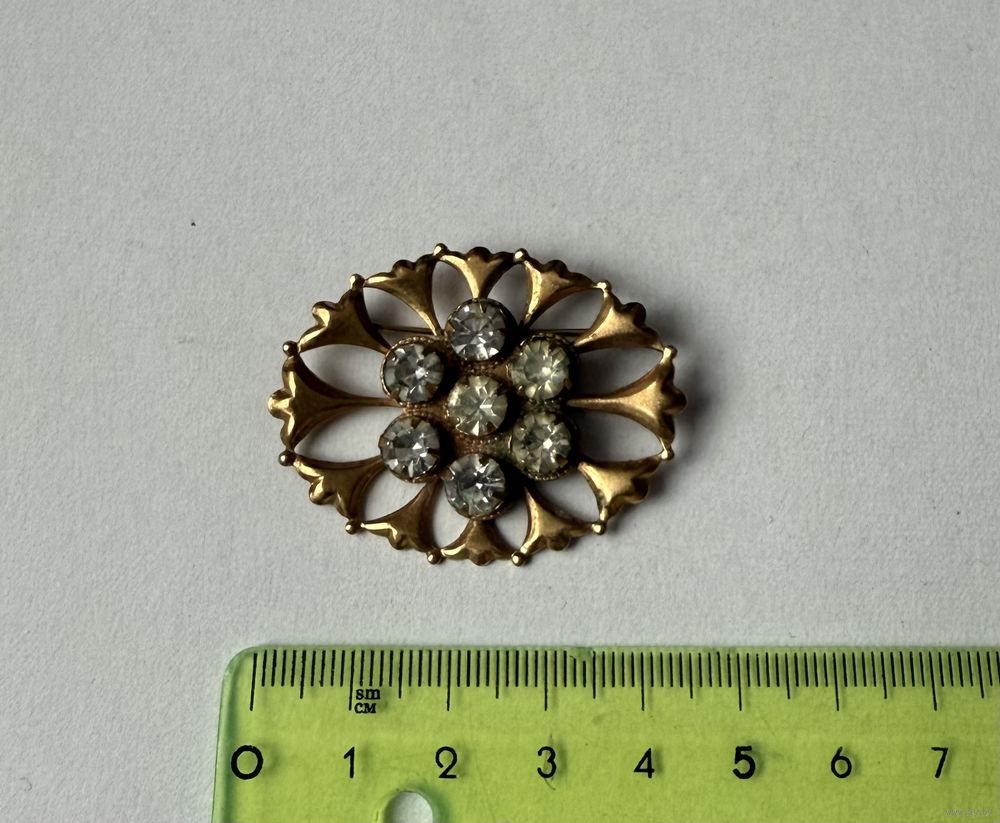 Размер 4,5 х 3,5 см. Металл. Позолота. Игла родная. Камни без сколов и трещин.