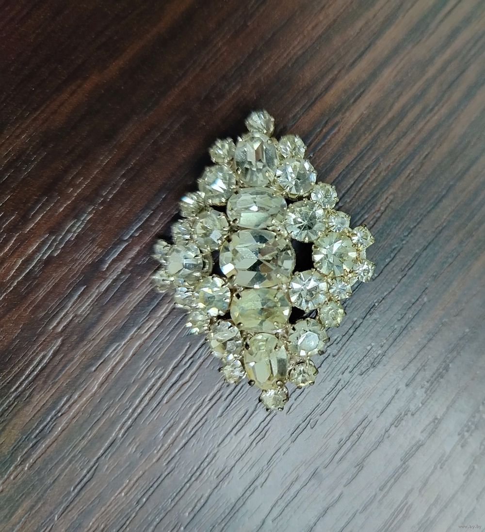 Винтажная брошь со стразами , стиль крупный кластер , Чехословакия СССР , крепеж булавка с застежкой .