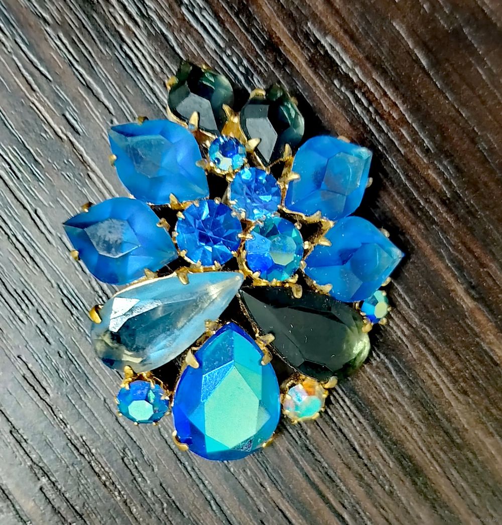 Винтажная брошь , Цветок Индиго , Чешское стекло , крепеж булавка с застежкой . размеры 4.5 на 4.5. вес 16 грамм .