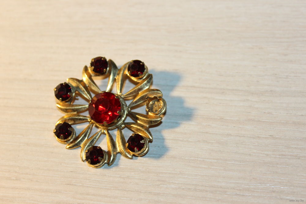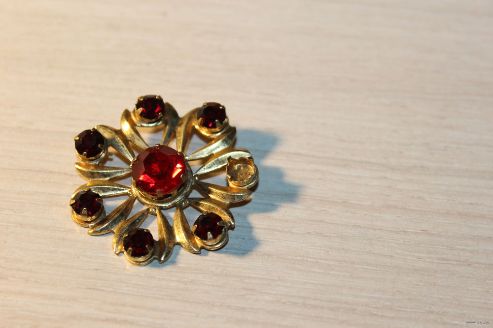 Брошь времён СССР, на восстановление, диаметр 40 мм., клеймо МК 09, нет одной вставки, иголка поломана.