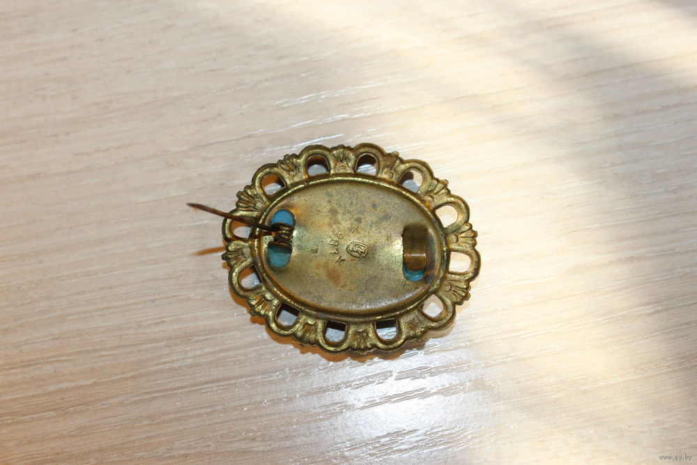 Брошь времён СССР, размер 4.5*3.см., вставка пластик, оправа металл, клеймо.