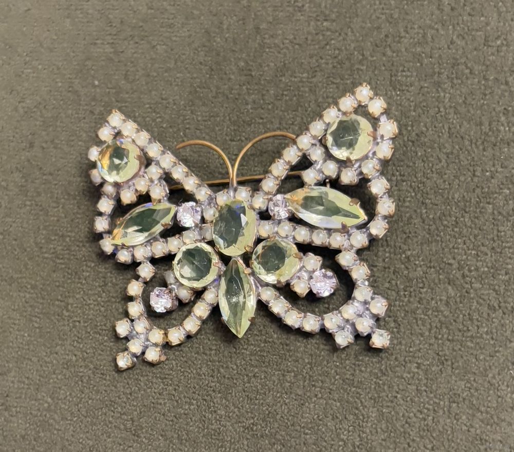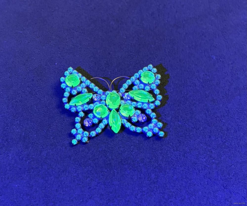 Брошка - Бабочка (2) из уранового стекла . Производство Чехия .