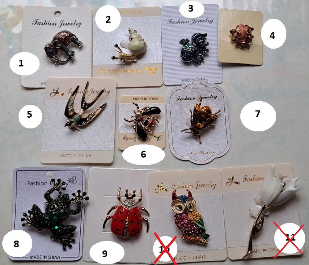 Брошки разные, новые, №3-4-по 9руб, №1-2-5-6-7-по 15руб, №8-9-по 20руб.