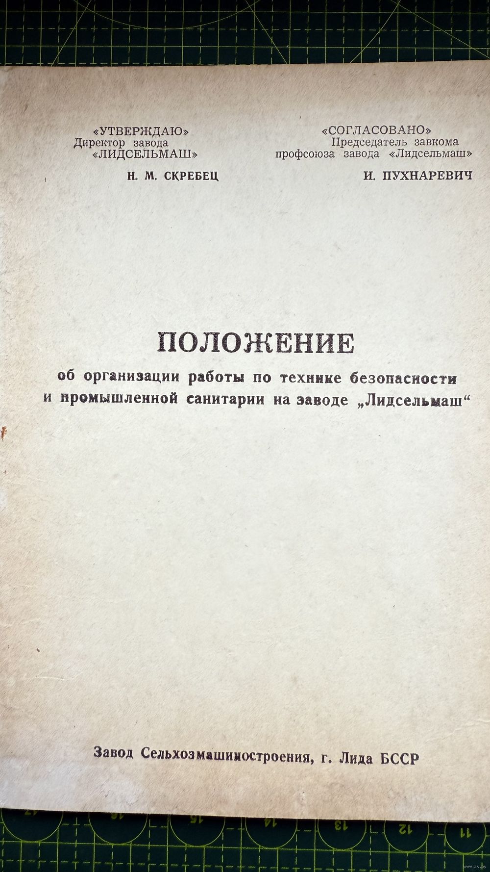 Брошюра, Положение по технике безопасности з-д Лидсельмаш, г. Лида, лидская типография