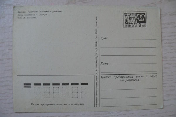 Брянск. Памятник воинам-водителям; 1973, чистая, ДМПК.