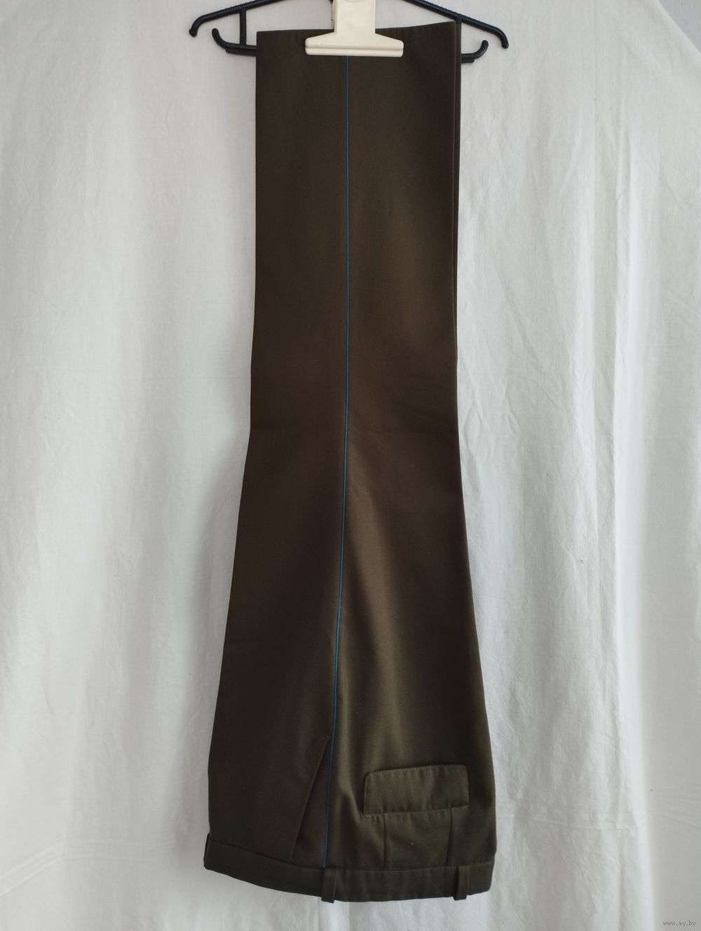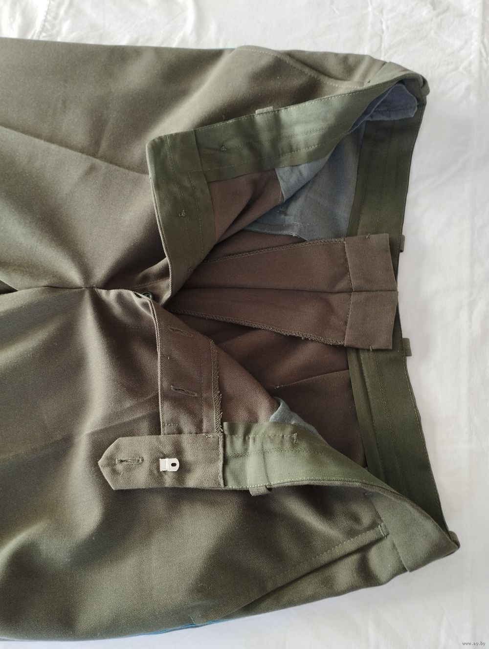 Полуобхват талии (ПОТ) 49 см, длина брюк 107 см. Брюки сшиты на заказ, с запасом по талии (см. фото).