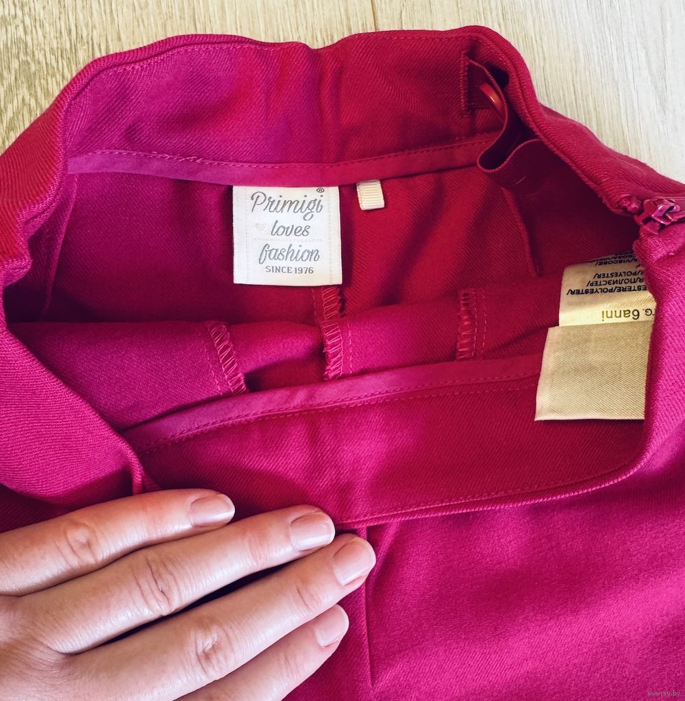 Брюки Primigi, сток. Рост по ярлыку 116 см. Ткань полиэстер+вискоза+эластан, не тонкая. Пояс регулируется. Карманы. Яркий малиновый цвет.