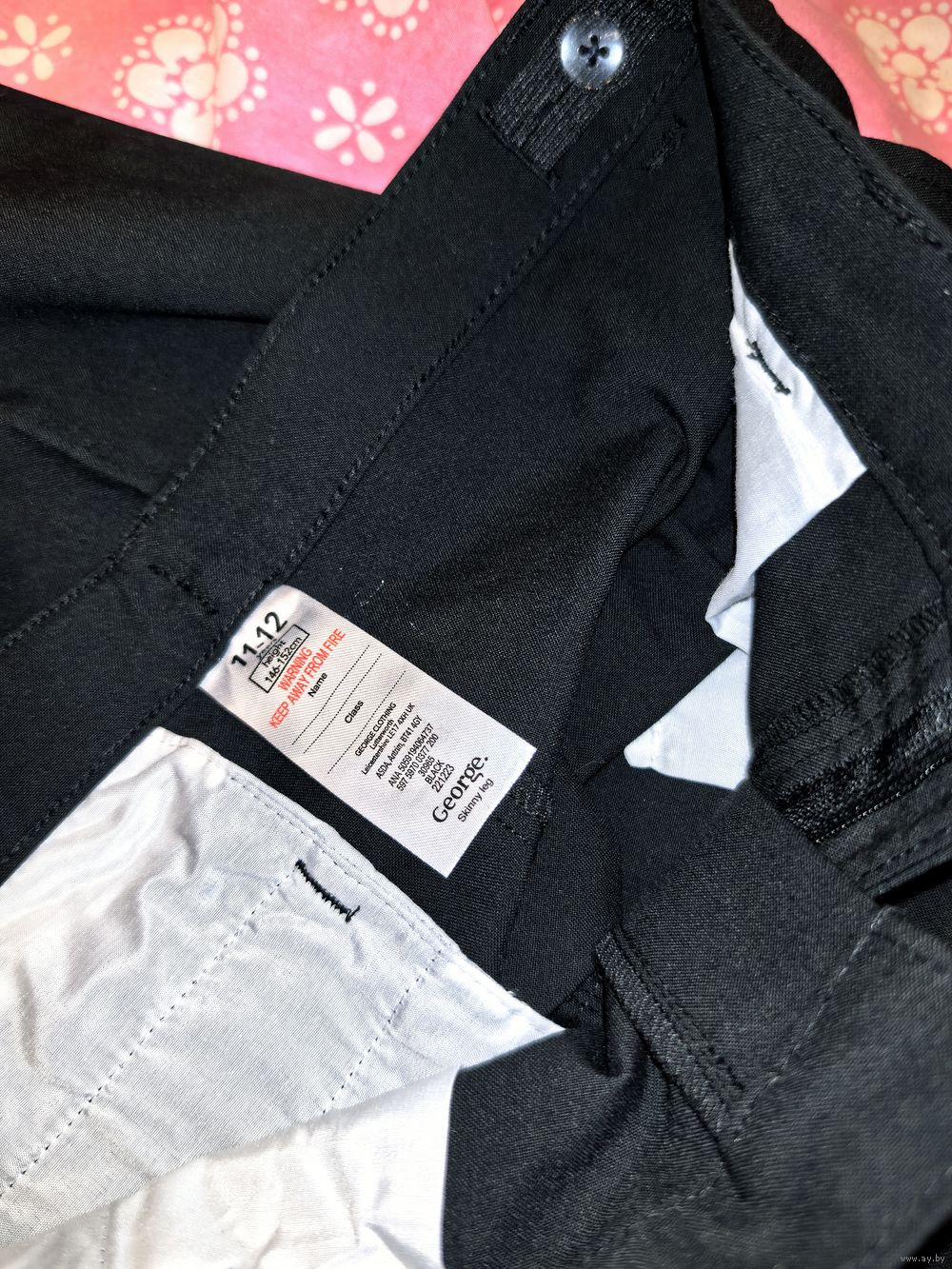 Маркировка - см. фото. В поясе есть резинка-утяжка для регулировки объёма по талии. По бокам 2 глубоких врезных кармана.