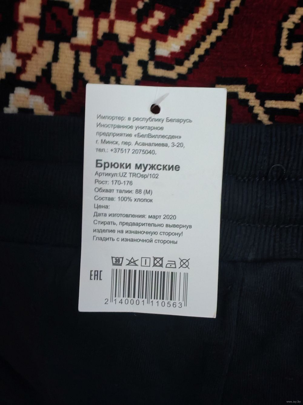 РАЗМЕР 48- 50. РОСТ 170 - 176. СОСТАВ: 100% ХЛОПОК.