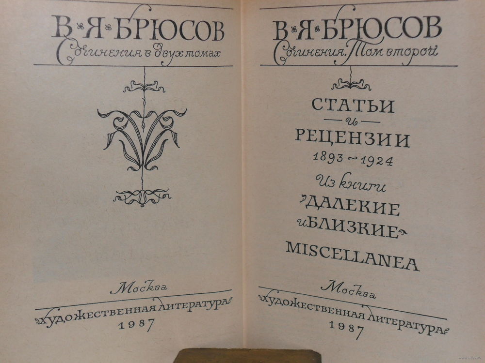 Содержание: Том 1 - Стихотворения. Поэмы. Составление, вступительная статья и комментарии А.А. Козловского. Том 2 - Статьи и рецензии (1893-1924). Из книги «Далекие и близкие». «Miscellanea». Вступительная статья Д.Е. Максимова. Составление Д.Е. Максимова и Р.Е. Помирчего. Комментарии Р.Е. Помирчего.