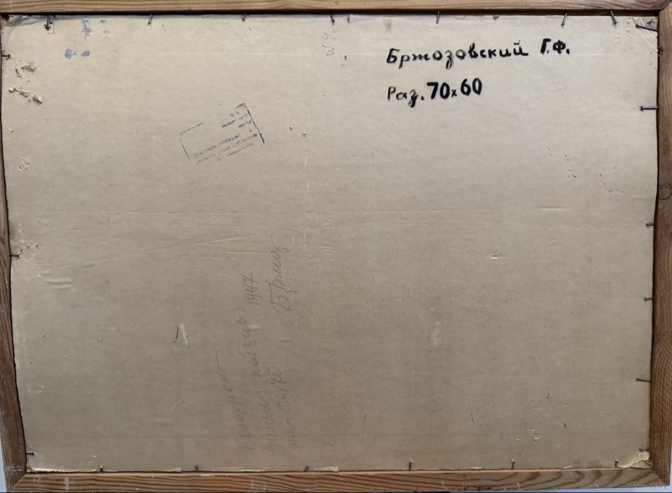 Генрих Францевич Бржозовский , годы жизни: 1912 -2008 В 1933 году окончил Витебский худ. техникум, в 1941 году - курсы повышения квалификации (под рук. Ф. Мадорова, М. Керзина) в Минске. Работал в станковой живописи (фигуративная картина, пейзаж, натюрморт). С 1937 года участвовал в художественных выставках. Член союза художник СССР. С 1945 года - в Белорусском союзе художников. Участник І съезда художников Беларуси (1938) Лауреат премии международного фонда "Детям Чернобыля" (1996). Произведения Г. Бржозовского находятся в Национальном художественном музее Беларуси, Музее современного изобразительного искусства в Минске, Белорусском музее истории Великой отечественной войны, Оршанском краеведческом музее, Могилёвском областном художественном музее имени П. Масленикова, Литературном музее Я. Купалы в Минске, Пуховическом краеведческом музее (открыт зал Г. Бржозовского), Витебском областном краеведческом музее, фондах Белорусского союза художников.