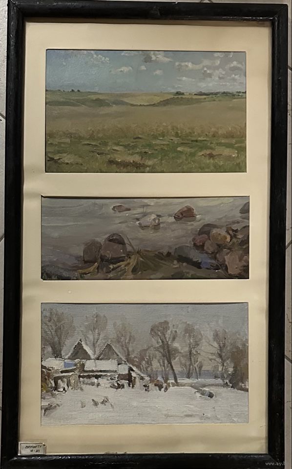 Бржозовский Г.Ф .Этюды "Волковичи.Берег озера Свитязь.Нарочь" .Картон, масло. Размер 62,5х37,5 см.