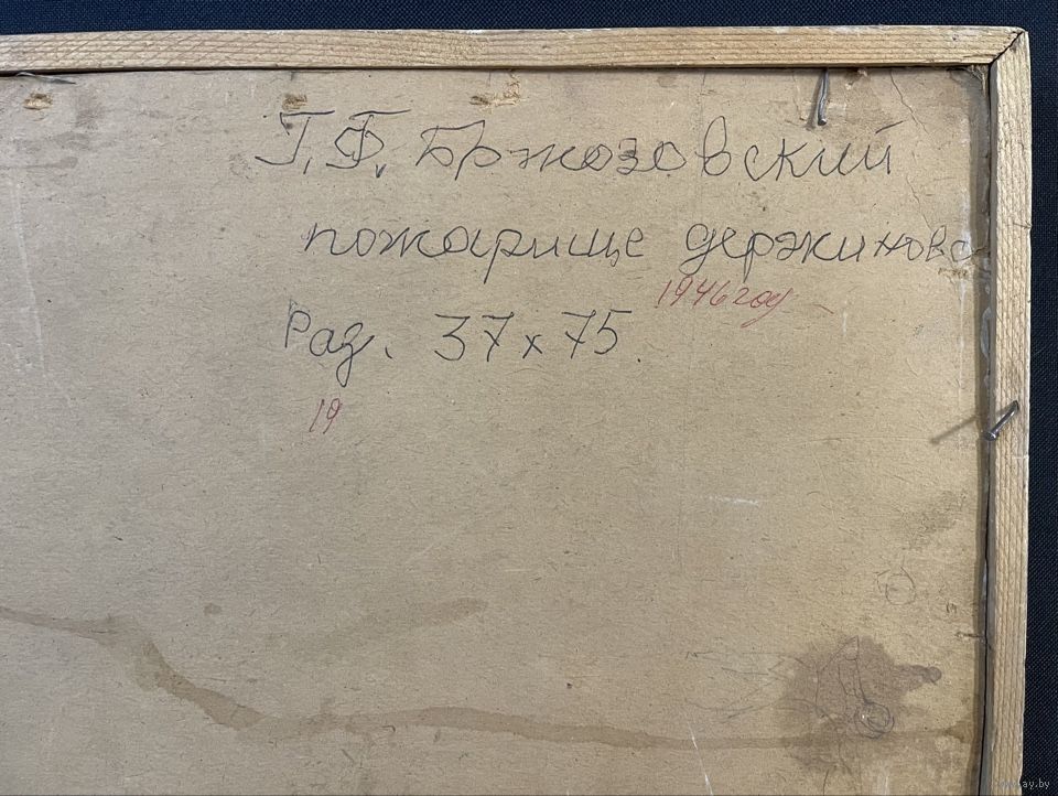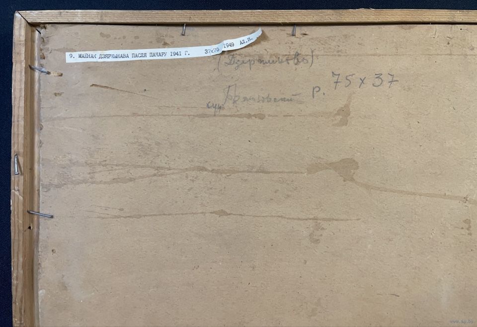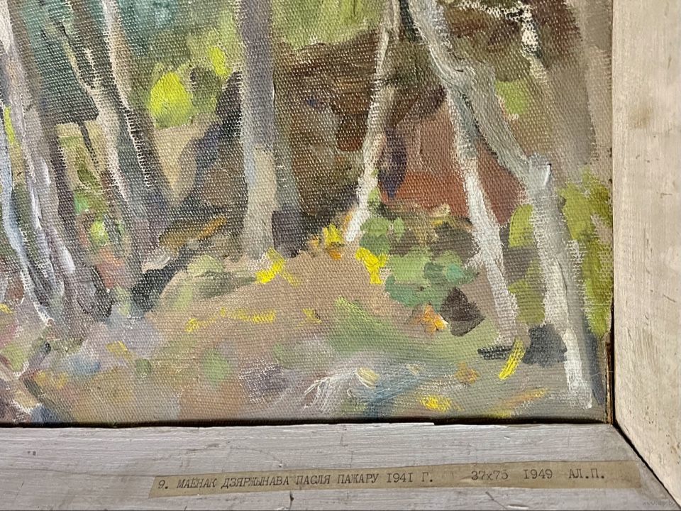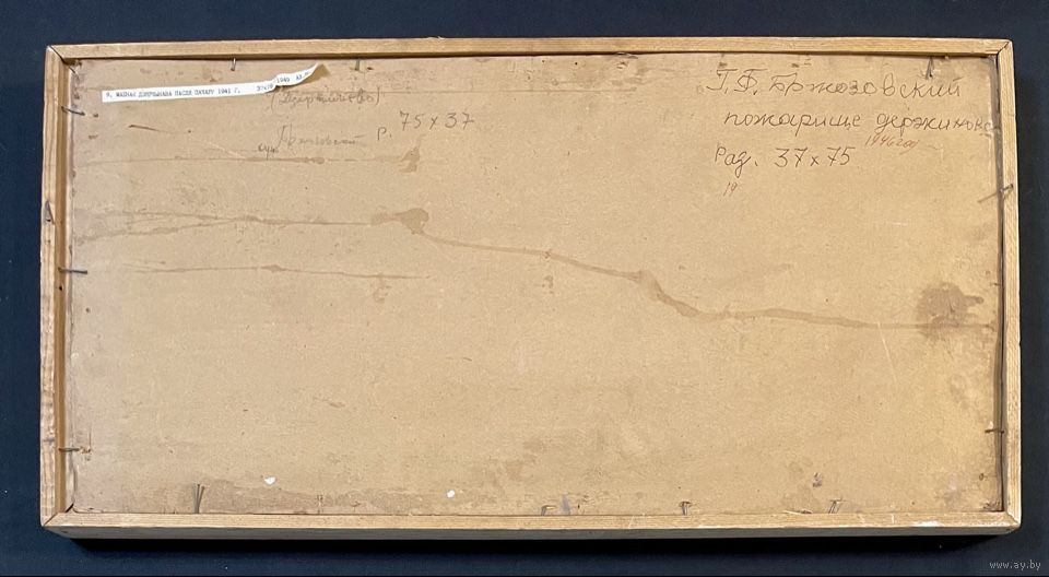 Бржозовский Г.Ф "Маёнак Дзяржынава пасля пажару 1941г.",1949г. Холст на картоне, масло. Размер 39х77 см.