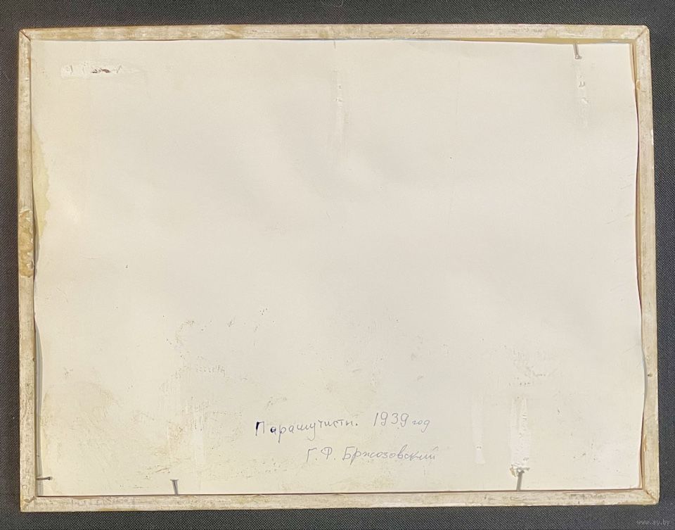 Бржозовский Г.Ф "Парашютисты", 1939 год. Картон, масло. Размер с родной рамой 42х32 см.