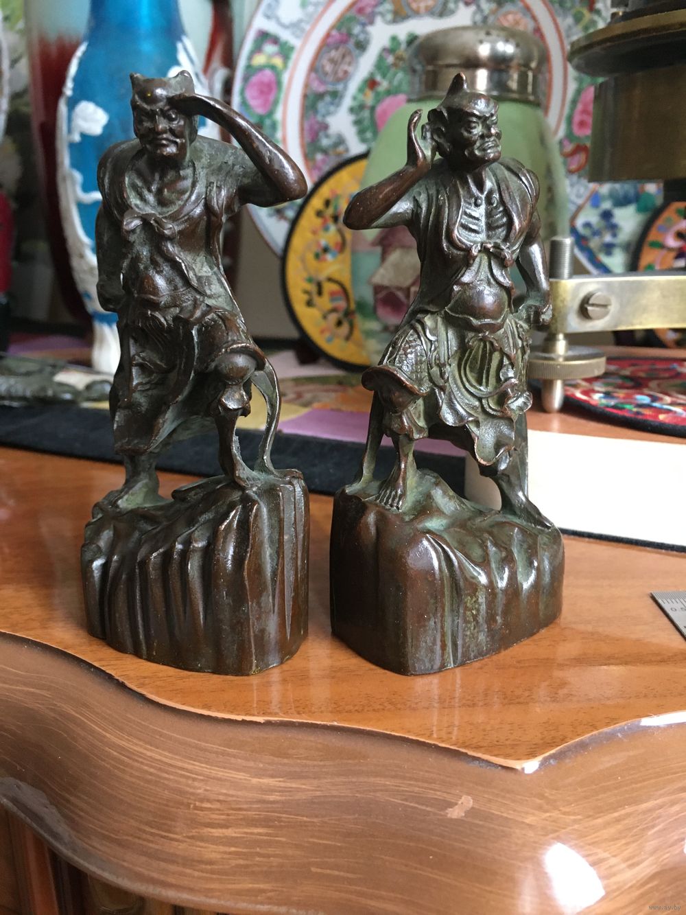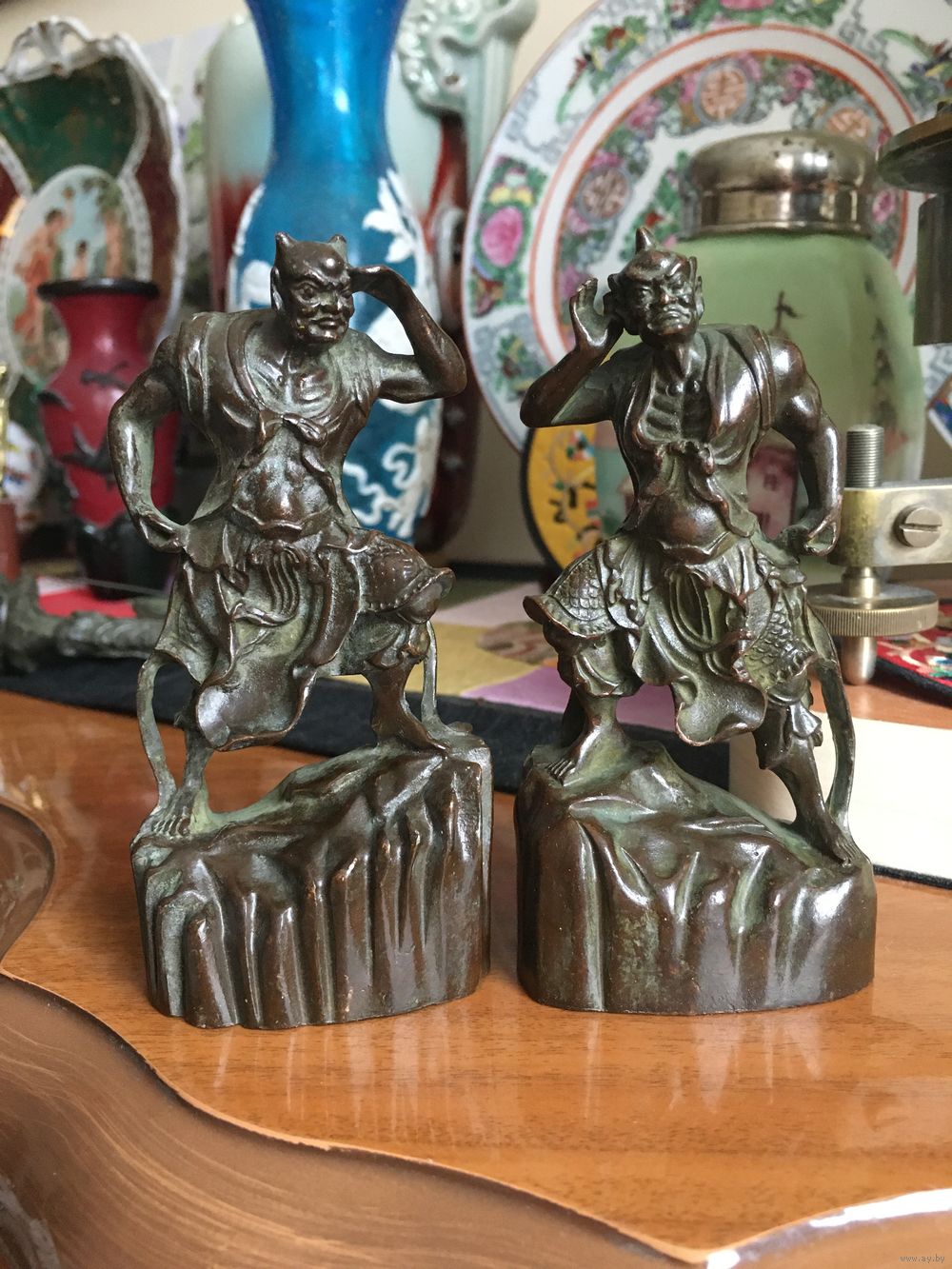 Тибет, середина 20 века, бронза, исключительная детализация, статуи этих богов стоят у дверей и ворот буддийских храмов и монастырей, высота каждой 12 см, тяжелые, распродажа коллекции буддийской бронзы
