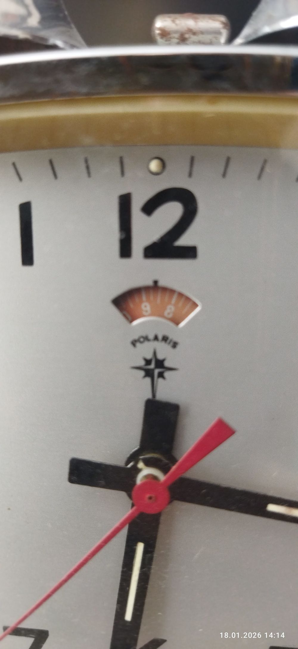 Будильник старый Китай с секундной стрелкой. Часы идут и останавливаются. Будильник срабатывает.