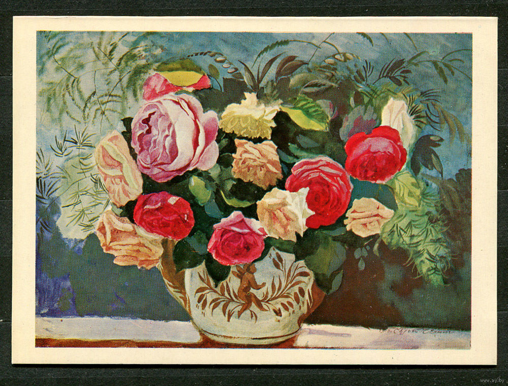 Букет роз в вазе. Худ. С. Чехонин. Ленинград