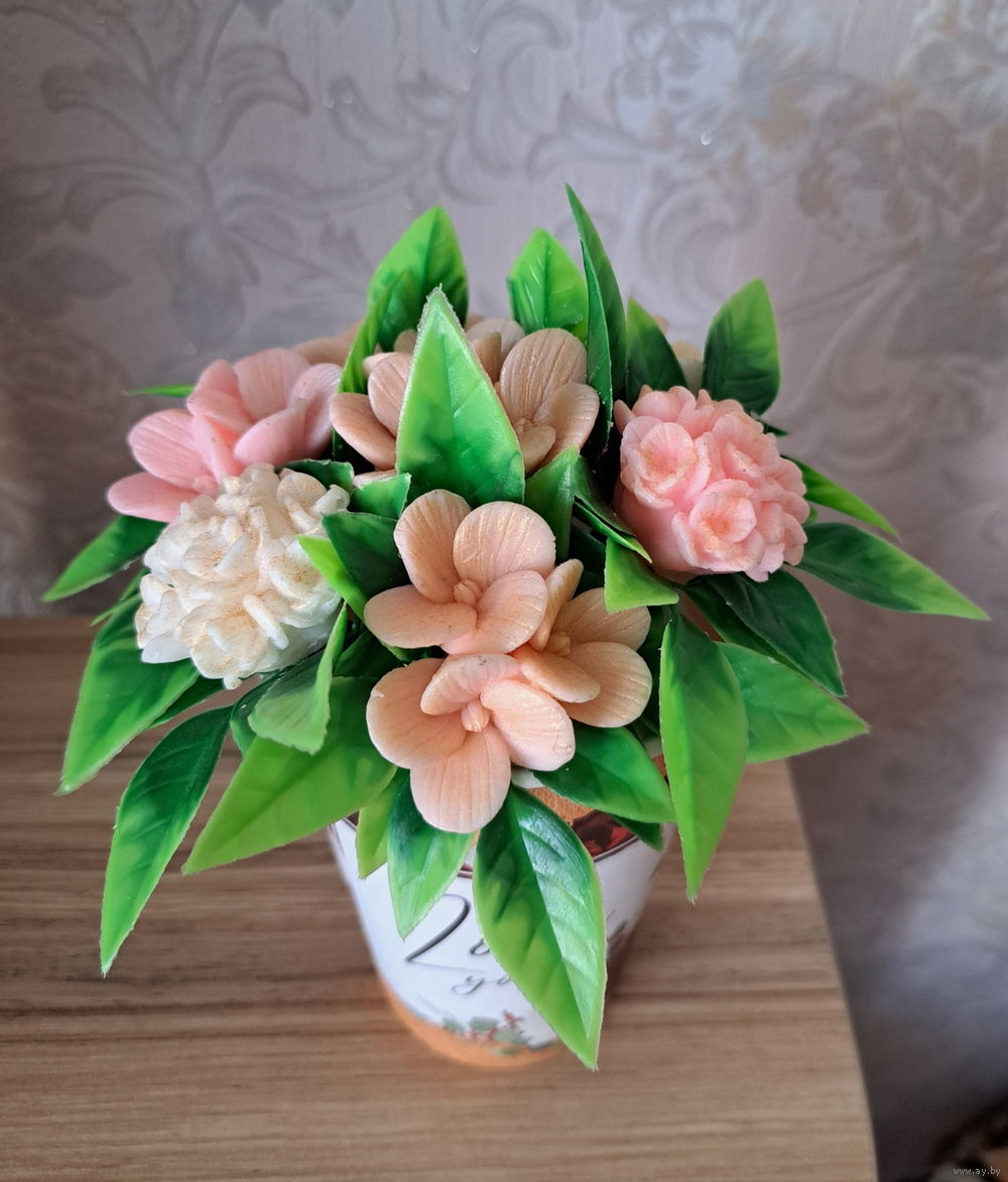 Мыльные цветы – имеют нежный цветочный аромат. Букеты могут немного отличаться от фото, но не критично.