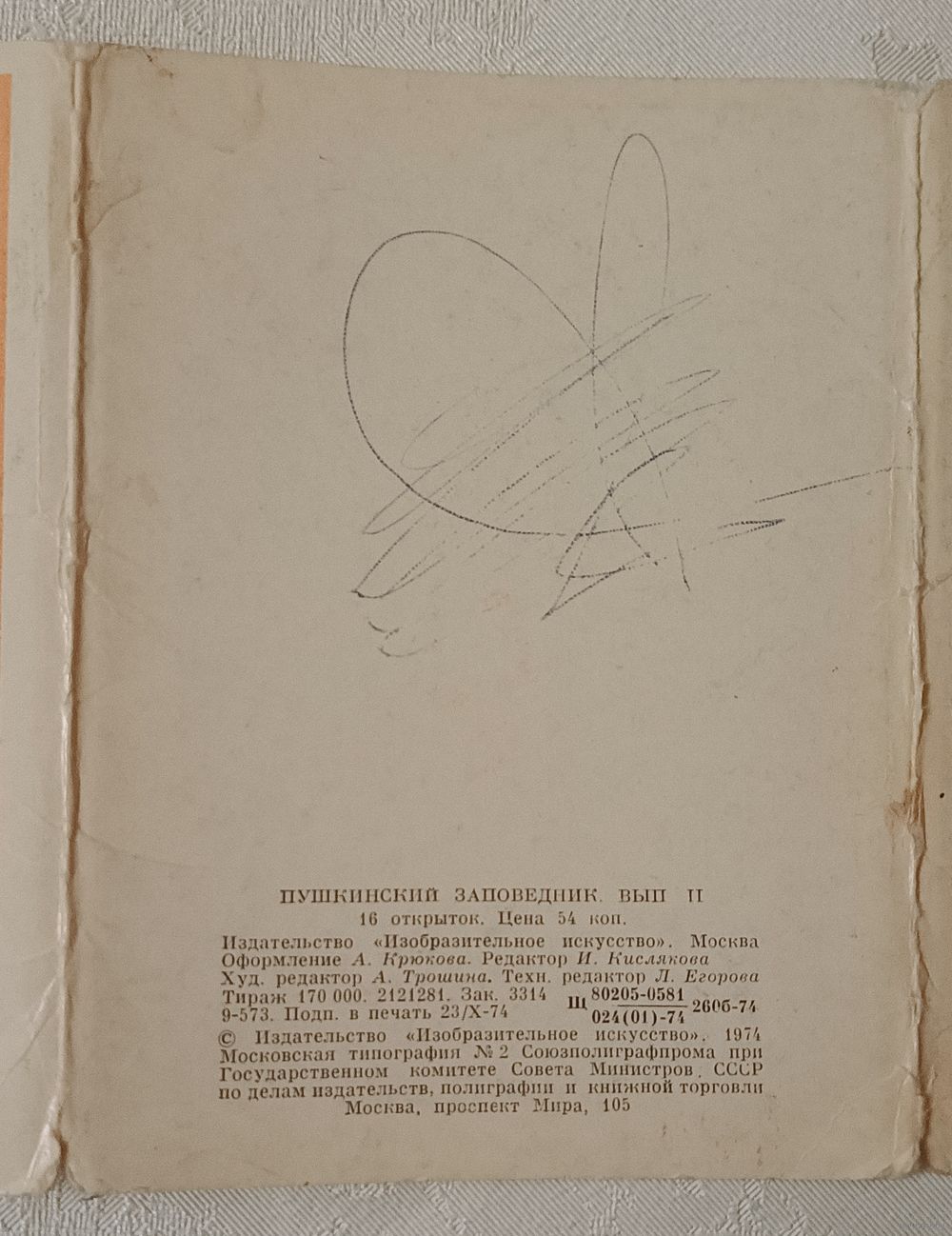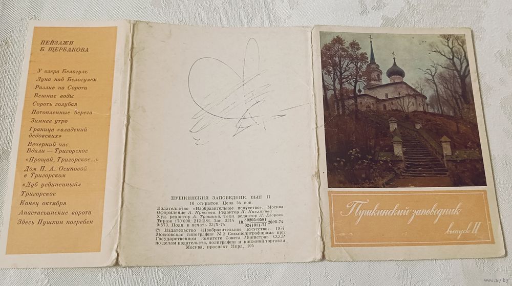 Буклет для открыток Пушкинский заповедник. Выпуск 2/1974