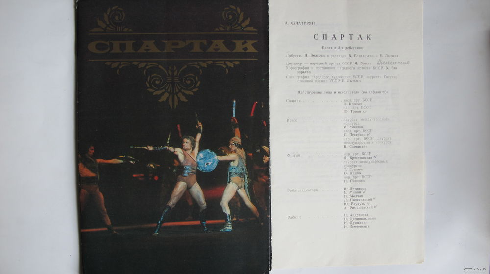 Буклет и программка спектакля ГАБТ БССР "Спартак" (1982 г.)