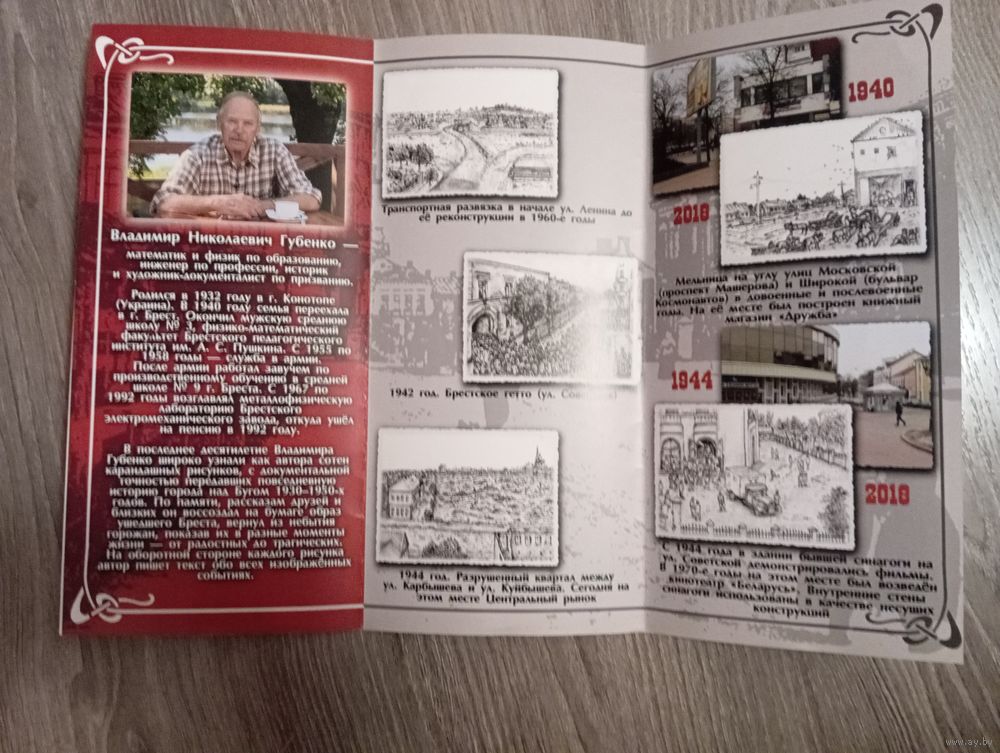 На изображении представлен буклет, посвященный Владимиру Николаевичу Губенко, математику, физику, инженеру, историку и художнику-документалисту, и его работам, запечатлевшим повседневную историю Бреста 1930-1950-х годов.