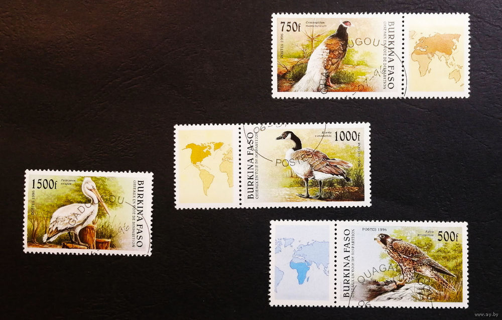 Буркина-Фасо 1996 г. Птицы. Фауна, полная серия из 4 марок #0233-Ф1P45