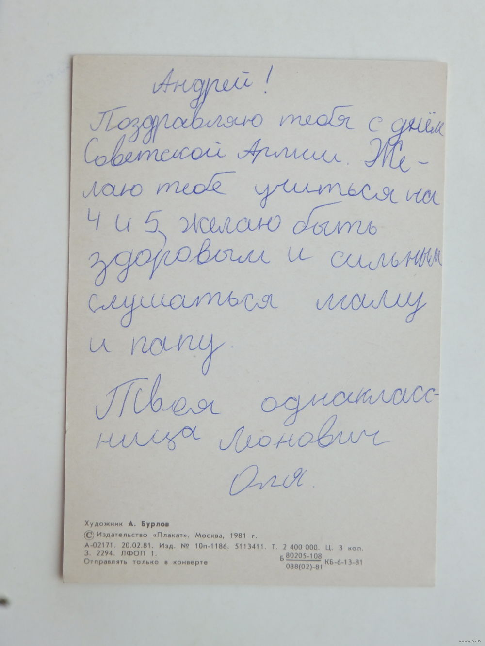 Бурлов слава защитникам 1981 10х15 см